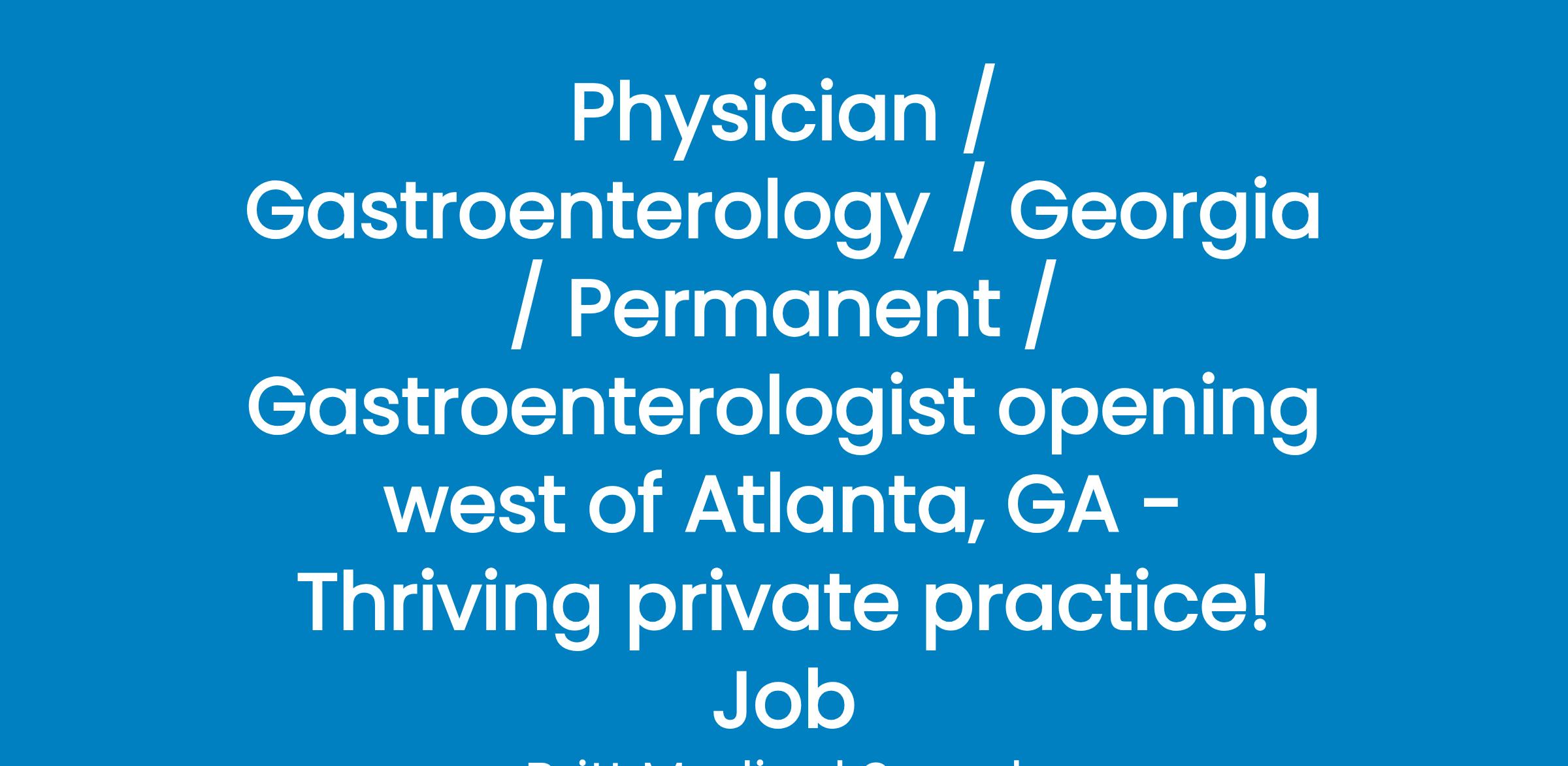 Seeking a BC/BE Gastroenterologist to join a well-established, thriving private practice in west Georgia!