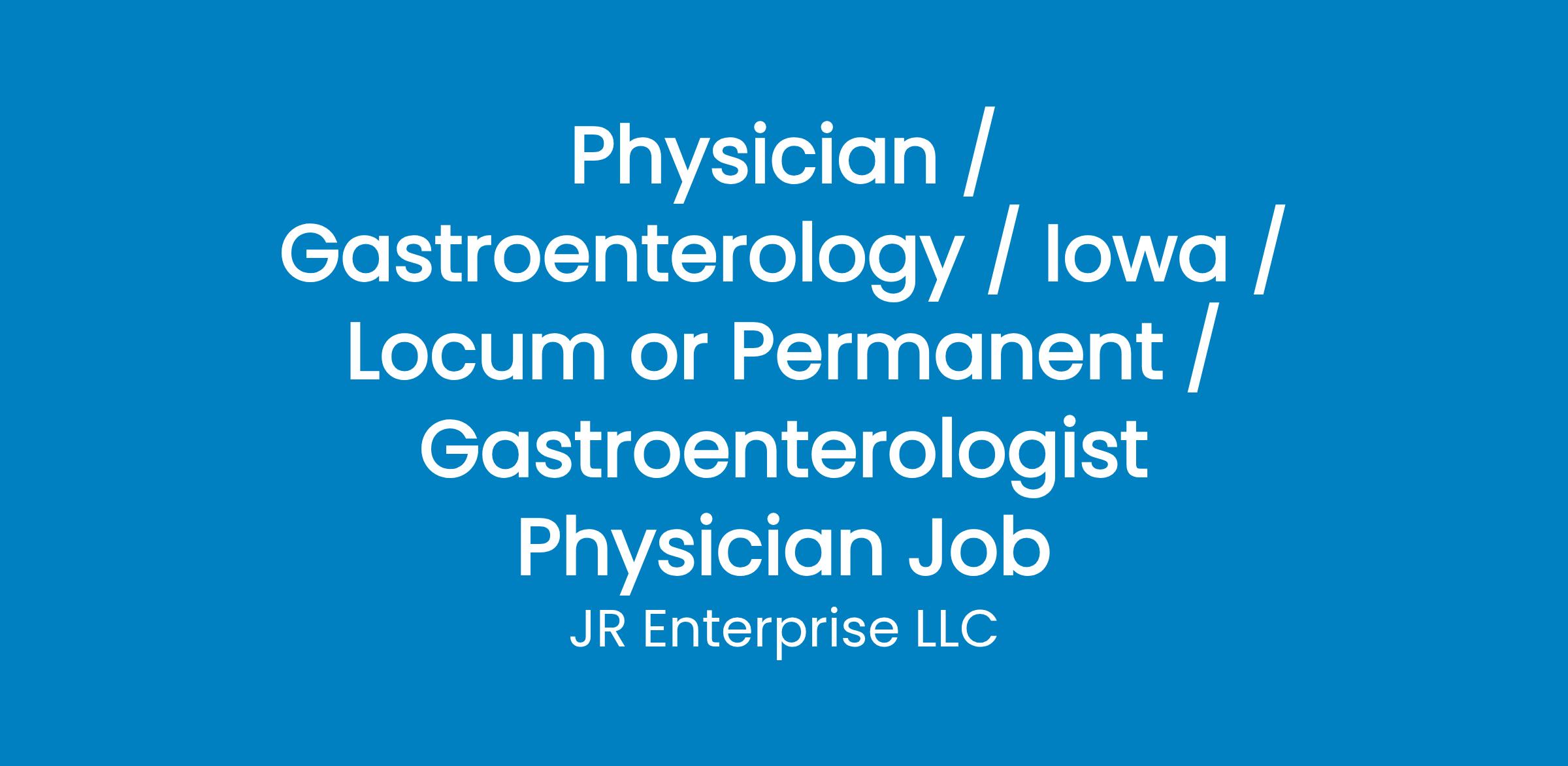 Job Title: GastroenterologistLocation: Des Moines IowaPosition Type: Contract (Long-term full-time position)Contract Length: 1 + 4 base yearsWork Schedule: weekdays, Monday to Friday Position Overview:We Are Currently Seeking A Highly Skilled And Compassionate Gastroenterologist (Contract Physician) To Join The Department of Veterans Affairs. The Gastroenterologist Will Provide Comprehensive Gastroenterology Services Including Diagnostic And Therapeutic Procedures, Consultations, And Patient Education To Our Veteran Population. This Role Requires Clinical Excellence, Integrity, And A Strong Commitment To The Highest Standards Of Patient Care And Federal Healthcare Compliance. Responsibilities:Provide Comprehensive Gastroenterology Clinical And Procedural Care To Veterans.Perform Diagnostic And Therapeutic Procedures Including:Colonoscopy (Diagnostic, Biopsy, Ablation, Snare, Bleeding Control, Via Colostomy).Esophagogastroduodenoscopy (EGD) (Diagnostic, Biopsy, Lesion Removal, Dilation, Bleeding Control).Flexible Sigmoidoscopy With Biopsy/Snare/Ablation/Bleeding Control.Percutaneous Endoscopic Gastrostomy (PEG) Tube Replacements.Conduct Outpatient And Inpatient Gastroenterology Consultations.Complete All Consultations And Procedures Within 30 Days Of The Request Date.Provide Patient Education, Discharge Instructions, And Follow-Up Planning.Comply With All VA Policies On Medication Use (No Sample Medications Permitted).Document All Patient Encounters In The VA Electronic Health Record (EHR) System.Participate In Quality Improvement Activities, Peer Review, And Department Meetings As Required.Maintain Compliance With HIPAA, VA Privacy Act, And VHA Documentation Standards.Notify The Contracting Officers Representative (COR) Of Any Performance Barriers Monthly.Adhere To The Contingency Plan To Ensure Continuity Of Care In Case Of Absence.Required Qualifications:Doctor Of Medicine (M.D.) Or Doctor Of Osteopathy (D.O.) From An Accredited Institution.Board Certified Or Board Eligible In Gastroenterology.Active, Unrestricted Medical License In The United States.Current Basic Life Support (BLS) And Advanced Cardiac Life Support (ACLS) Certifications.Strong Clinical Skills With Demonstrated Experience In Gastrointestinal Procedures.Ability To Deliver High-Quality, Evidence-Based, And Patient-Centered Care.Familiarity With VA Or Federal Healthcare Systems Preferred Comprehensive Benefits May Include:Competitive Hourly RateFlexible Contract OptionsFederal Holiday Schedule (11 Observed Holidays)Professional Development OpportunitiesMalpractice Coverage (As Applicable Under Federal Contract)Skills And Competencies:Clinical Excellence In GastroenterologyPatient Care & CommunicationTeam Collaboration In Multidisciplinary SettingsCompliance With Federal Medical StandardsEHR Documentation ProficiencyQuality And Safety AwarenessData Protection & Privacy:JR Enterprise, LLC collects personal information provided by applicants solely for Recruitment purposes. All information is stored securely and handled in compliance with applicable federal and state privacy laws. Candidate data will not be shared with third parties without consent, except as required by law. By submitting your application, you consent to the processing of your information for recruitment purposes in accordance with our privacy policy. Equal Opportunity:JR Enterprise, LLC is an Equal Opportunity Employer. We celebrate diversity and are committed to creating an inclusive environment for all employees. All qualified applicants will receive consideration for employment without regard to race, color, religion, sex, sexual orientation, gender identity, national origin, disability, or veteran status.