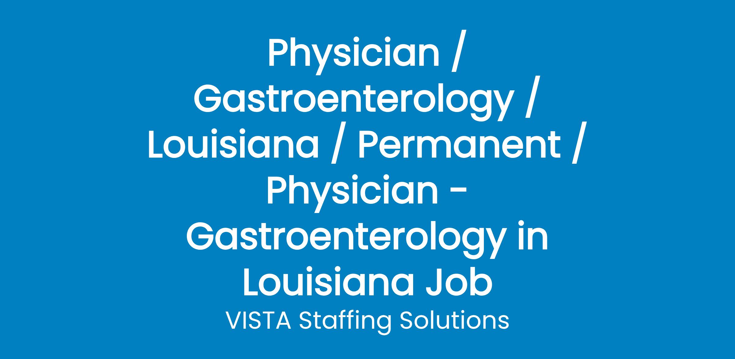 Are you a Gastroenterologist, searching for your next exciting perm opportunity? This permanent position in Lake Charles, Louisiana with one of VISTA's healthcare partners might just be the opportunity for you!