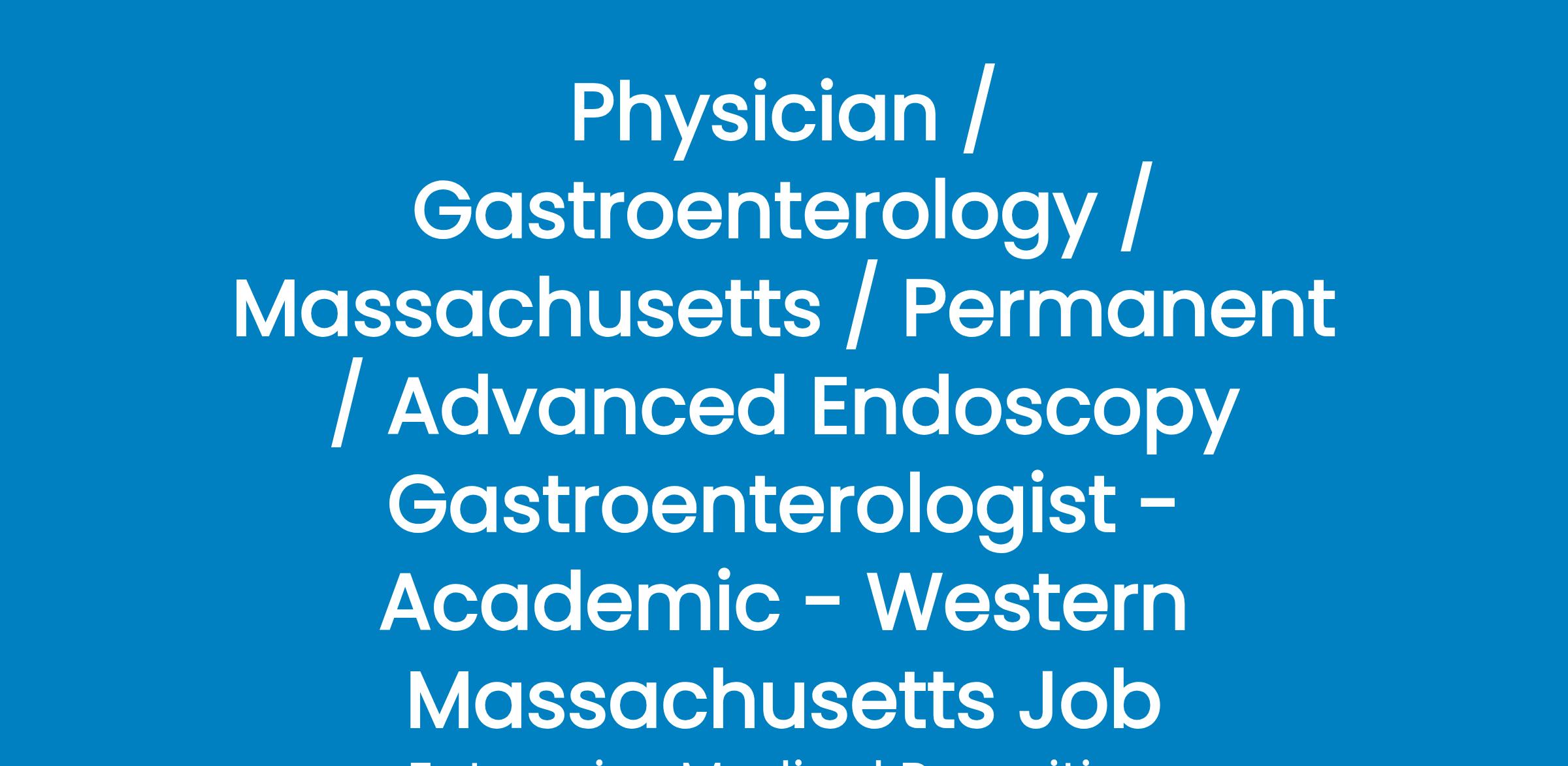 Seeking an Advanced Endoscopist to join an established group of 13 GIs and 3 Advanced Endoscopists in south/central Massachusetts.