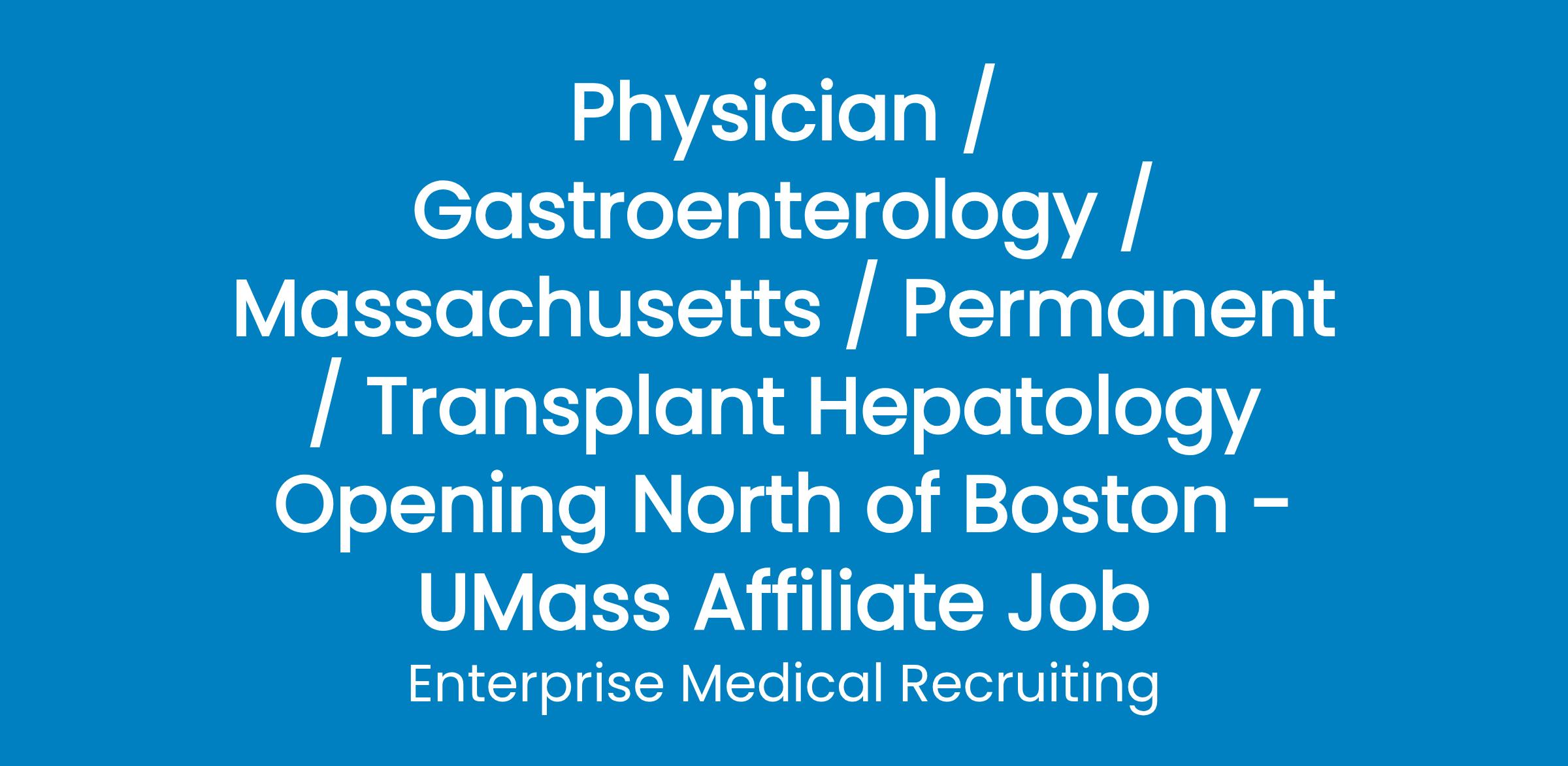 A world-renowned tertiary medical center known for its innovative technology, pioneering medical treatments, and cutting-edge research north of Boston is adding a Transplant Hepatologist.