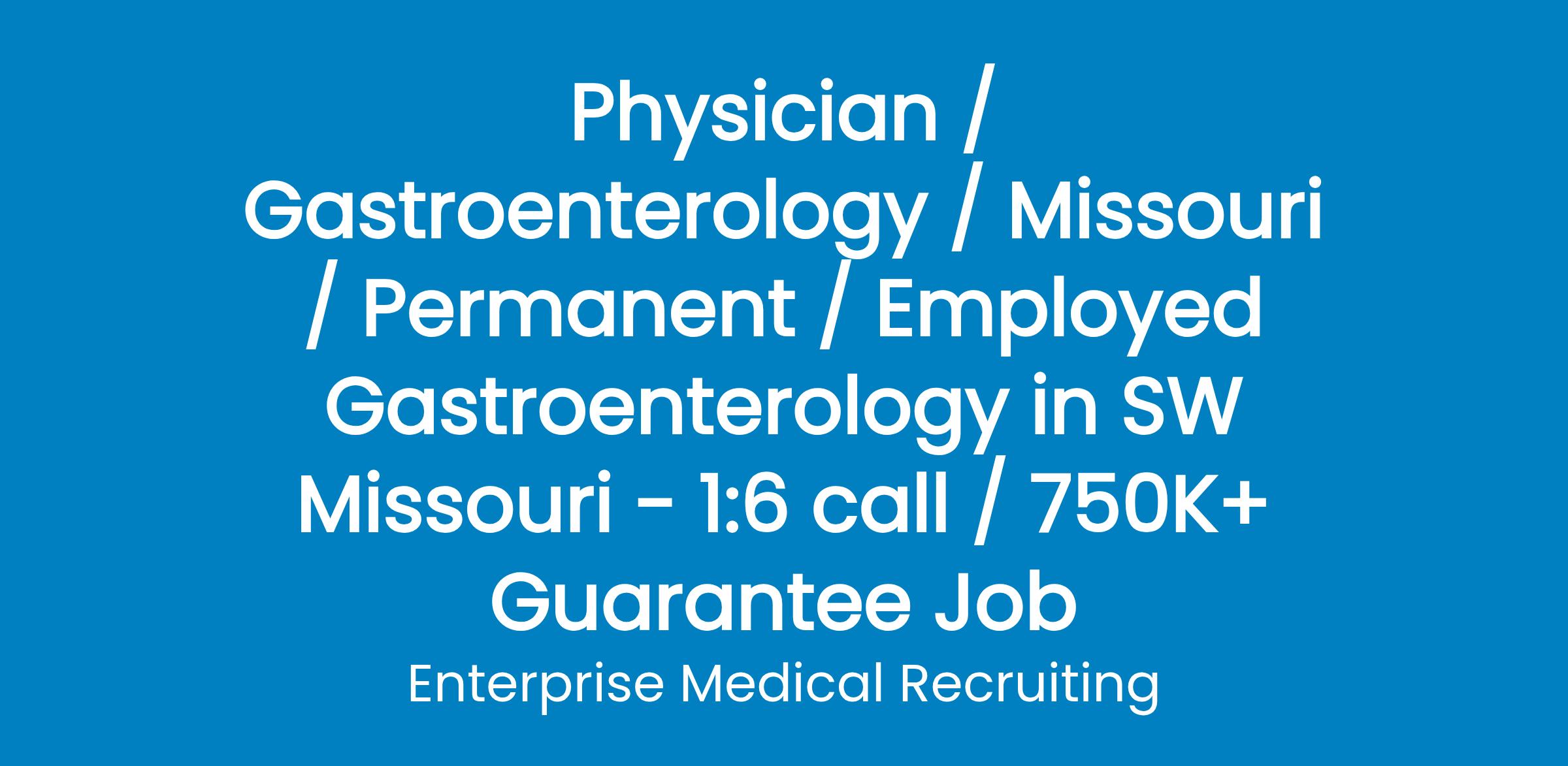 Enterprise Medical Recruiting is assisting a non-profit hospital in Joplin, MO to recruit a new Gastroenterologist. The incoming will be helping them with succession planning on an upcoming retirement and continued growth. They are looking for someone to do bread-and-butter GI, but ERCP and EUS skills are welcome.