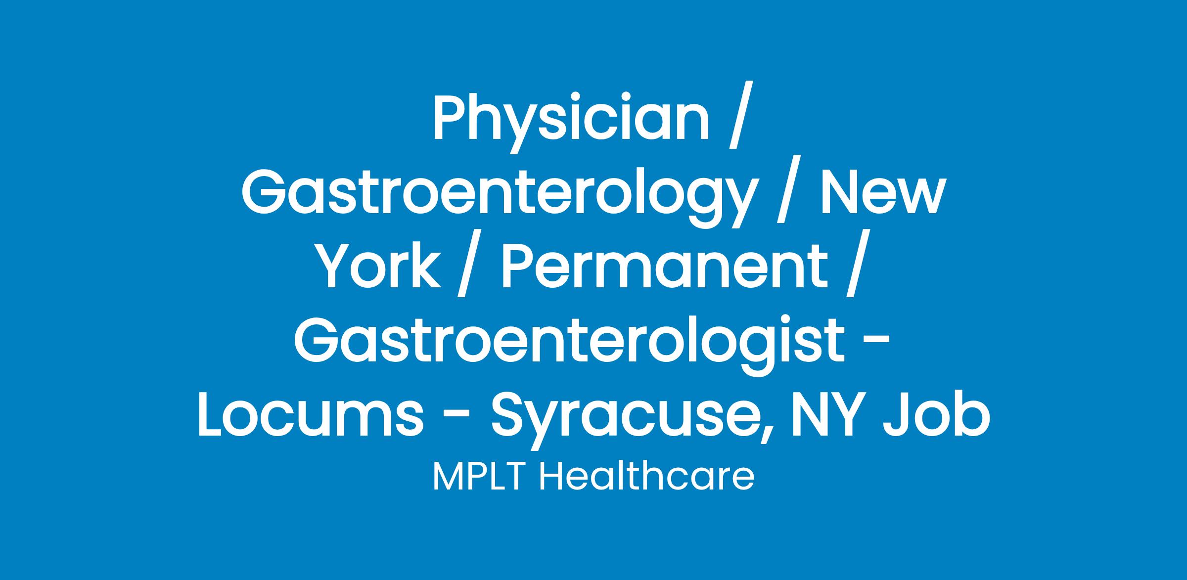 MPLT Healthcare is looking for physicians who Understand the Urgency, Never Give Up, and Have the Courage to Excel in the forever changing medical industry! We have numerous opportunities for an experienced Gastroenterologist w ith highly competitive pay rates in Syracuse, NY.