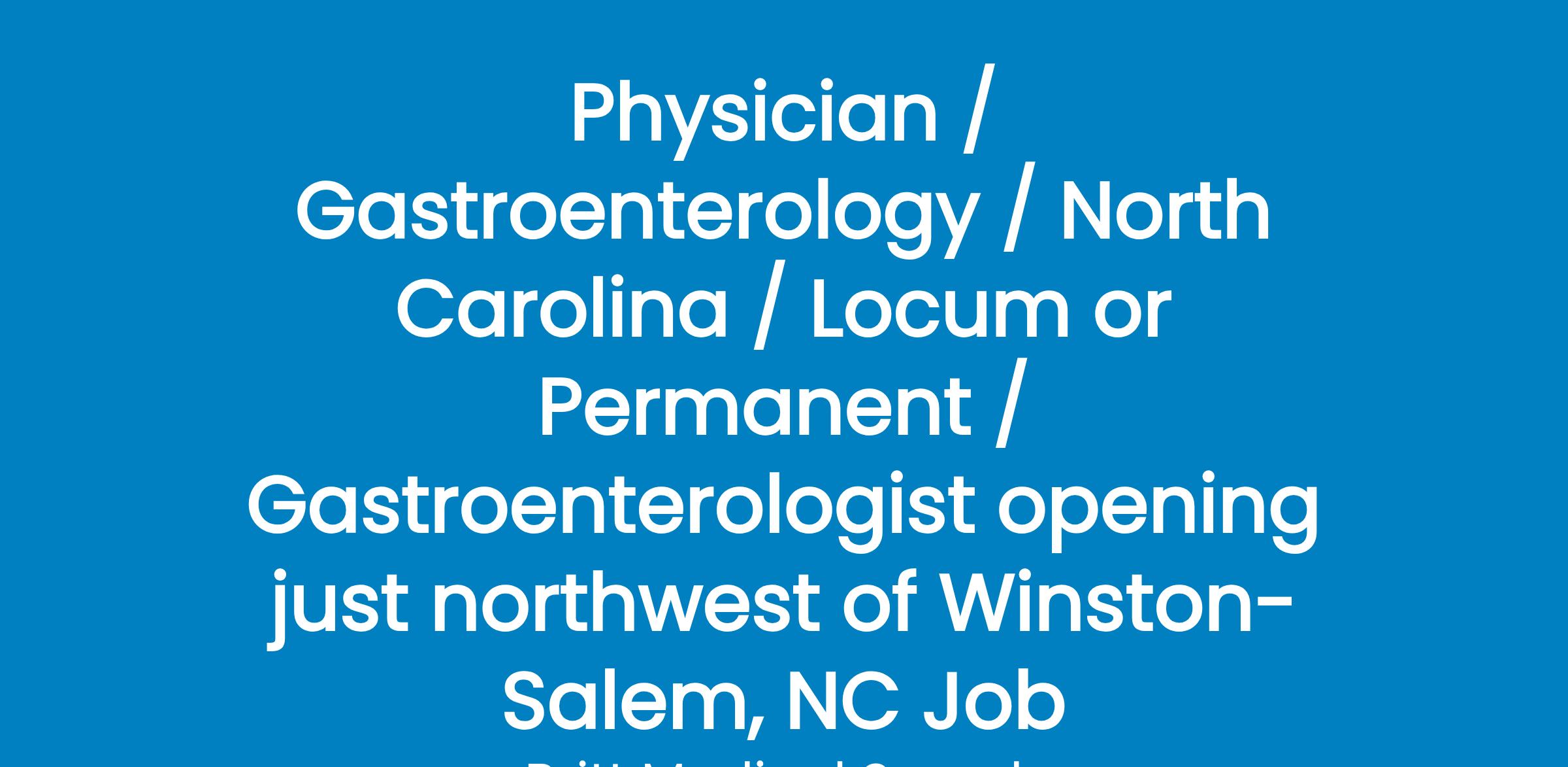 Seeking BE/BC Gastroenterologist to join our robust and well-established 55+member multi-specialty group practice in northern North Carolina.