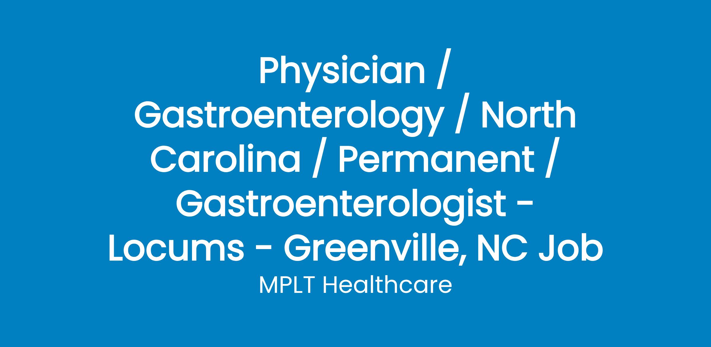 MPLT Healthcare is looking for physicians who Understand the Urgency, Never Give Up, and Have the Courage to Excel in the forever changing medical industry! We have numerous opportunities for an experienced Gastroenterologist with highly competitive pay rates in Greenville, NC.