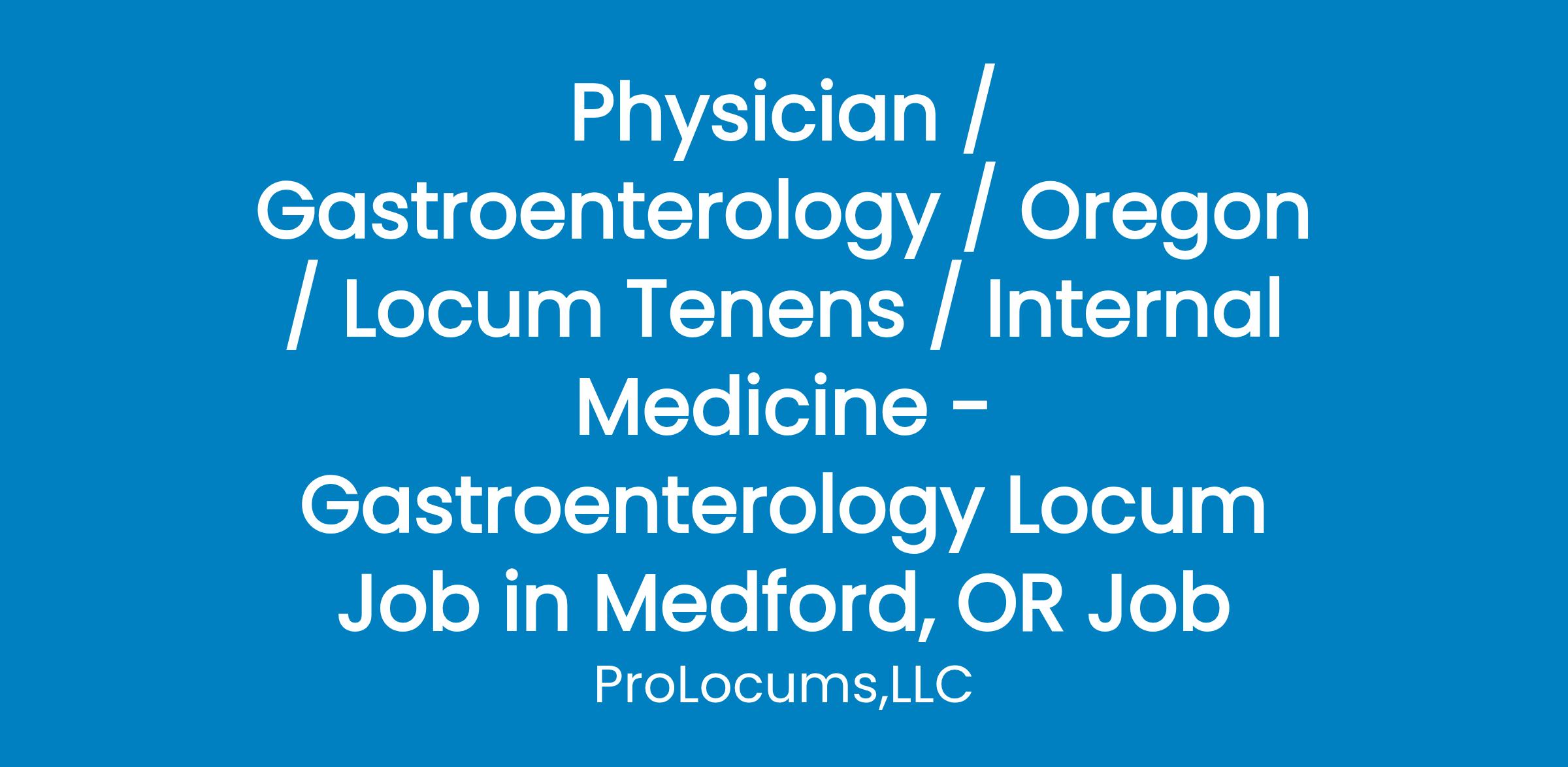 Physician / Gastroenterology / Oregon / Locum Tenens / Internal Medicine - Gastroenterology Locum Job in Medford, OR Job