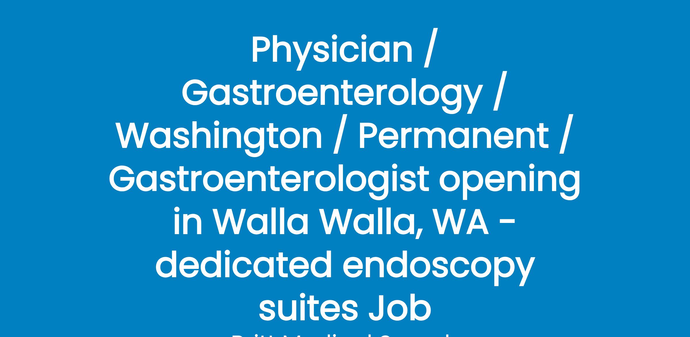 Medical Center is seeking a full-time, board-certified/board eligible Gastroenterologist to join a dedicated and compassionate team in a busy Gastroenterology practice. Enjoy a healthy work-life balance and all that Walla Walla has to offer in sunny southeast Washington.