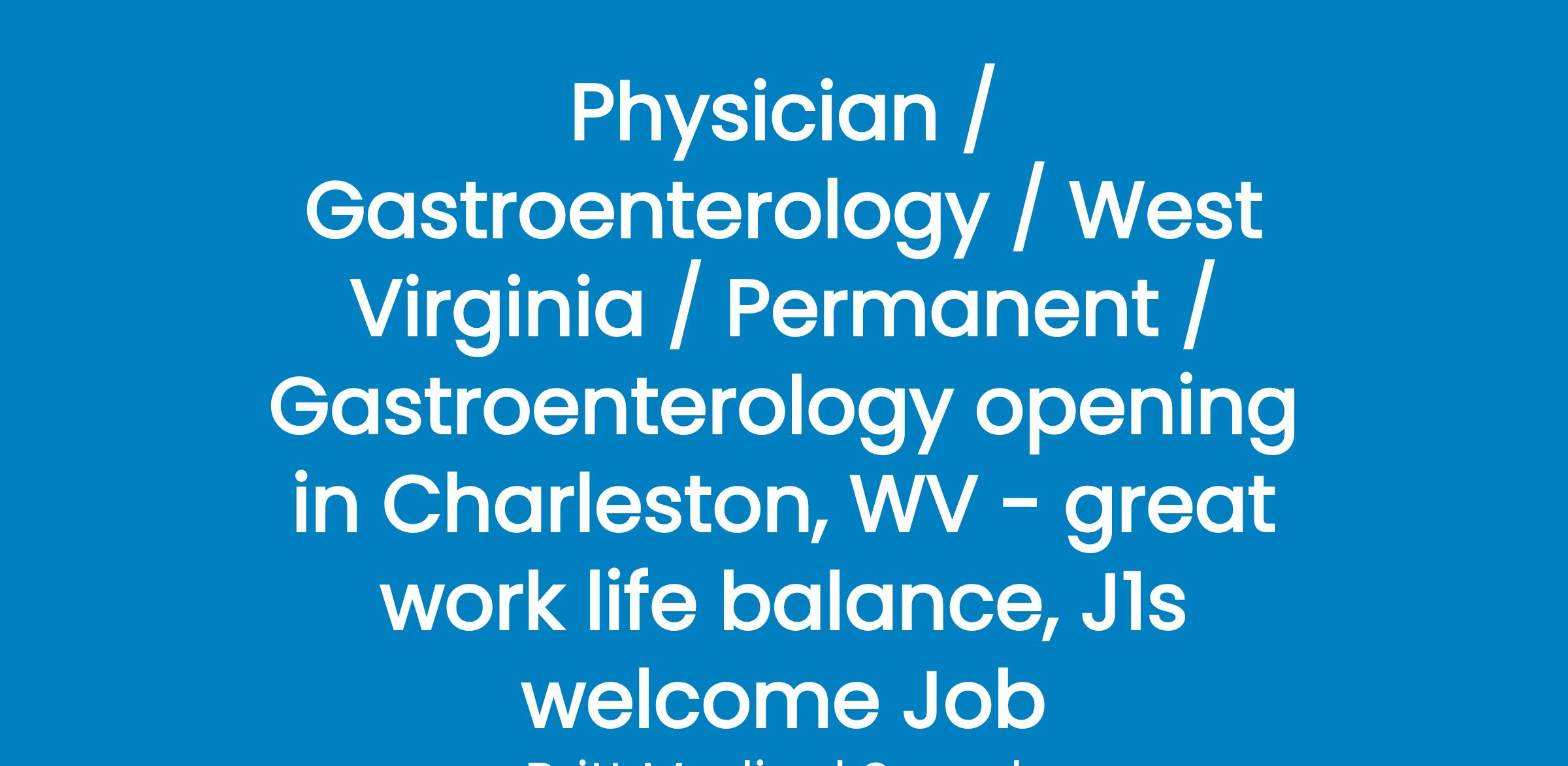 Health System, located in Charleston WV, is seeking a BE/BC Gastroenterologist to join an established gastroenterology practice of 4 physicians, part of a health system with over 300 affiliated providers.