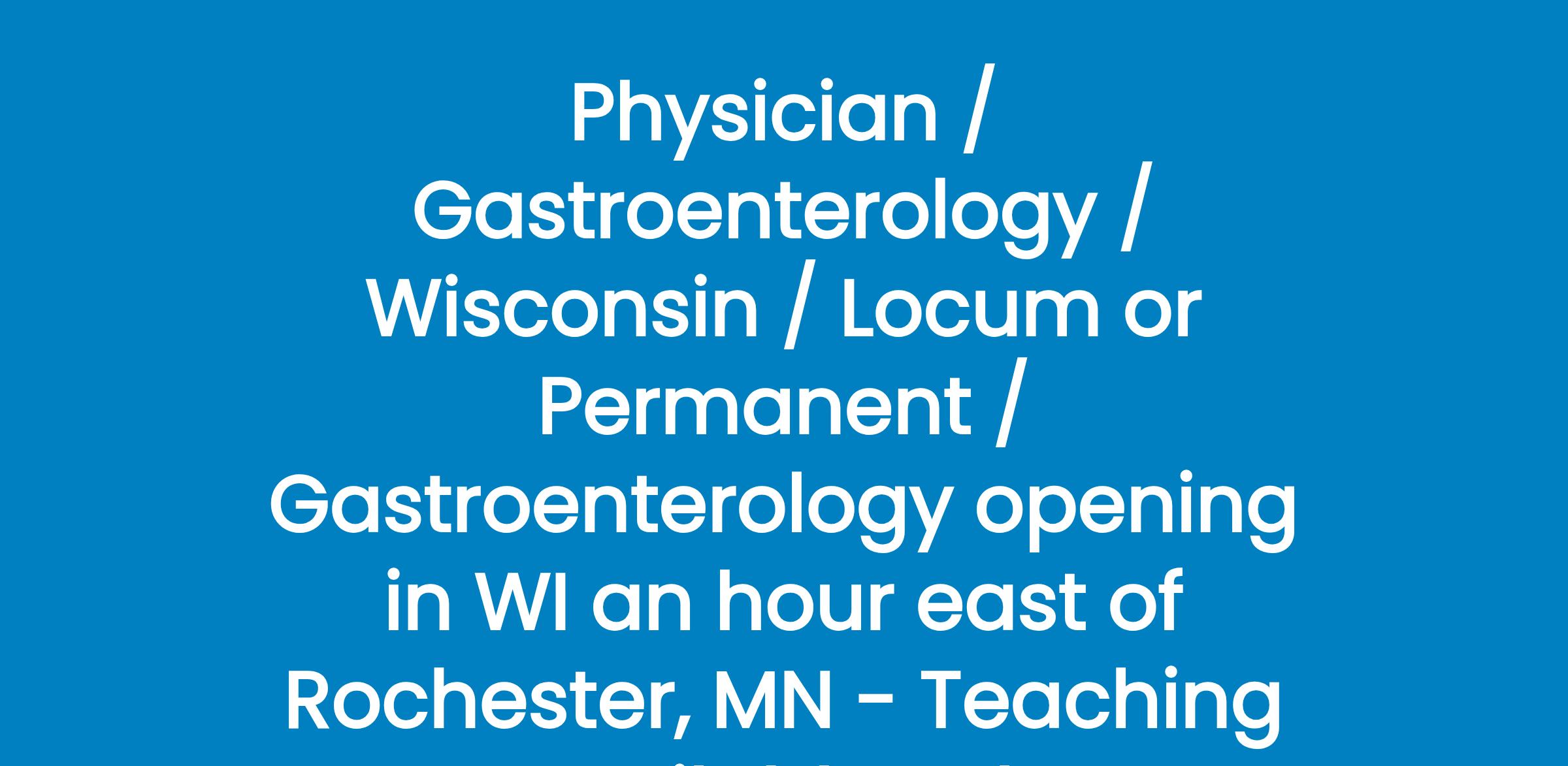 Seeking BE/BC Gastroenterologist to join team in La Crosse, WI. You will have an opportunity to step into a well established practice with a supportive team of gastroenterologists, advanced practice providers and a host of other ancillary personnel.