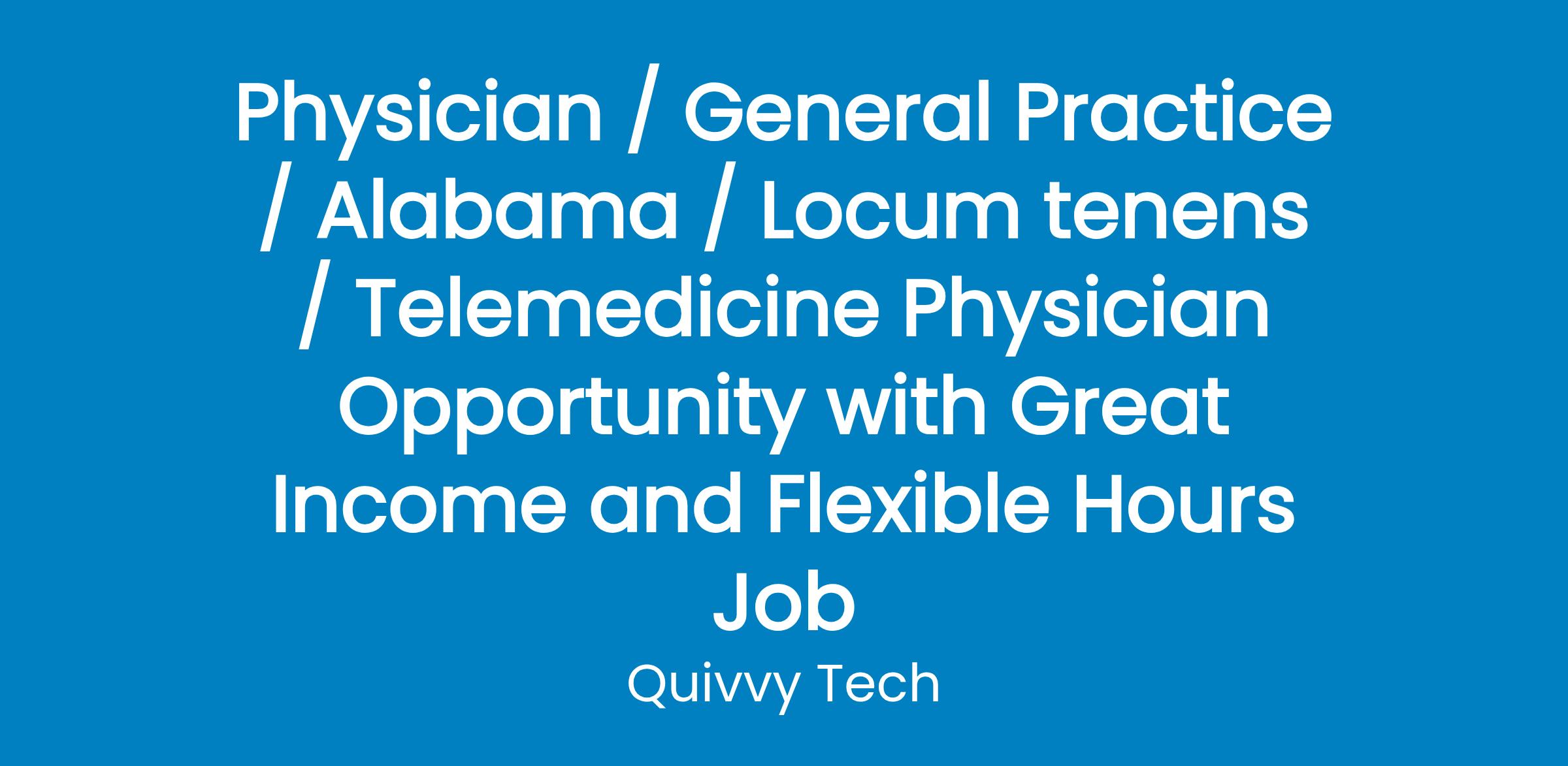 Physician / General Practice / Alabama / Locum tenens / Telemedicine Physician Opportunity with Great Income and Flexible Hours Job