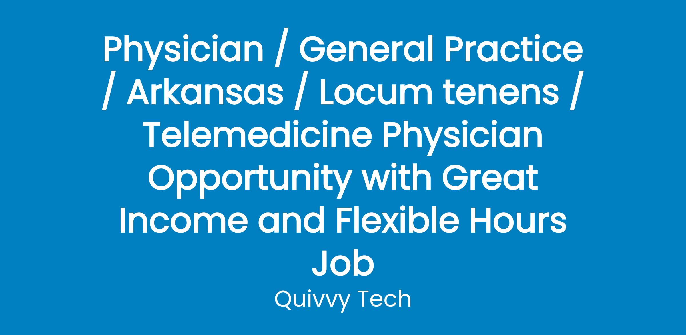 Physician / General Practice / Arkansas / Locum tenens / Telemedicine Physician Opportunity with Great Income and Flexible Hours Job
