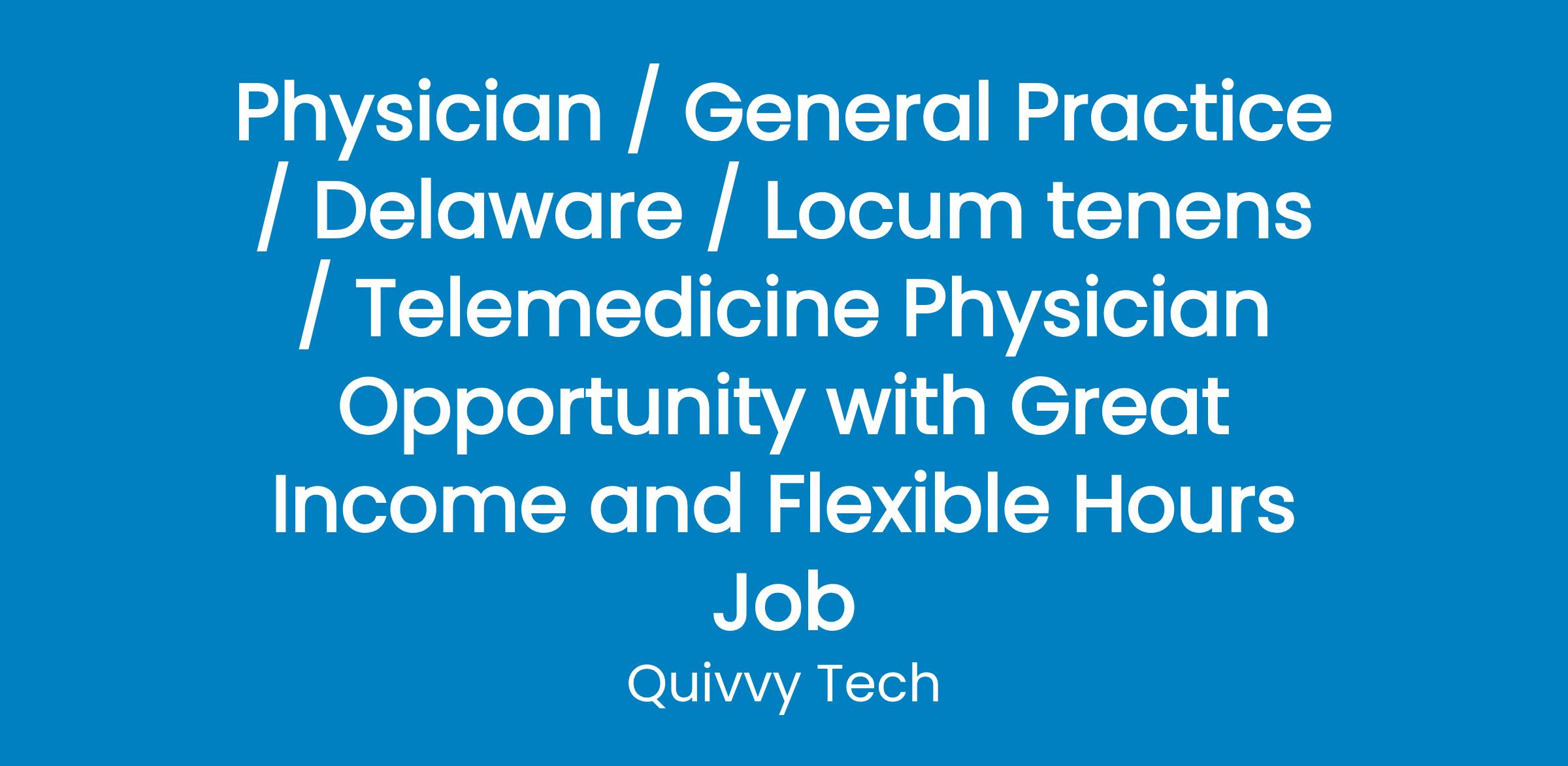 Physician / General Practice / Delaware / Locum tenens / Telemedicine Physician Opportunity with Great Income and Flexible Hours Job