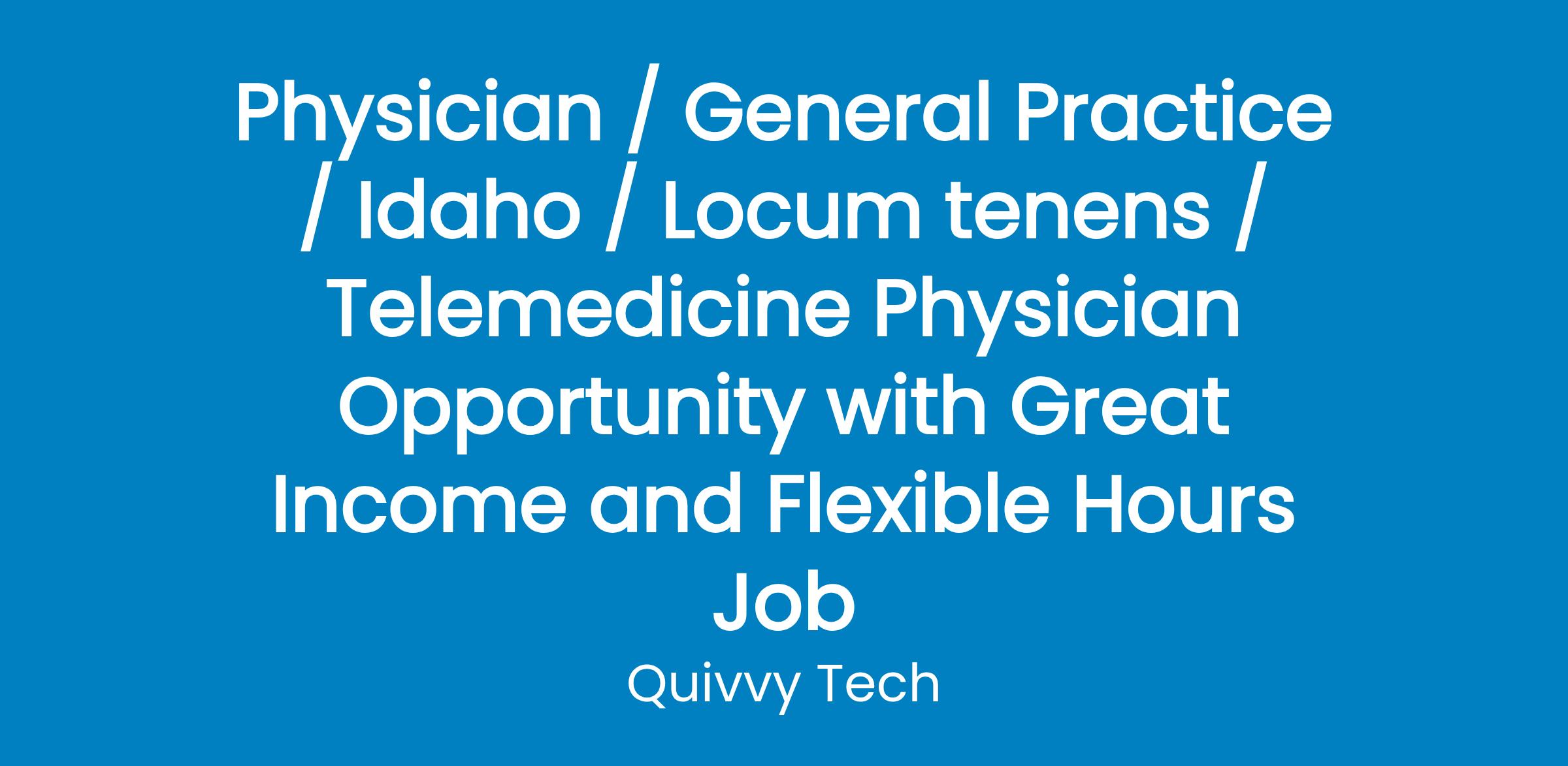 Physician / General Practice / Idaho / Locum tenens / Telemedicine Physician Opportunity with Great Income and Flexible Hours Job
