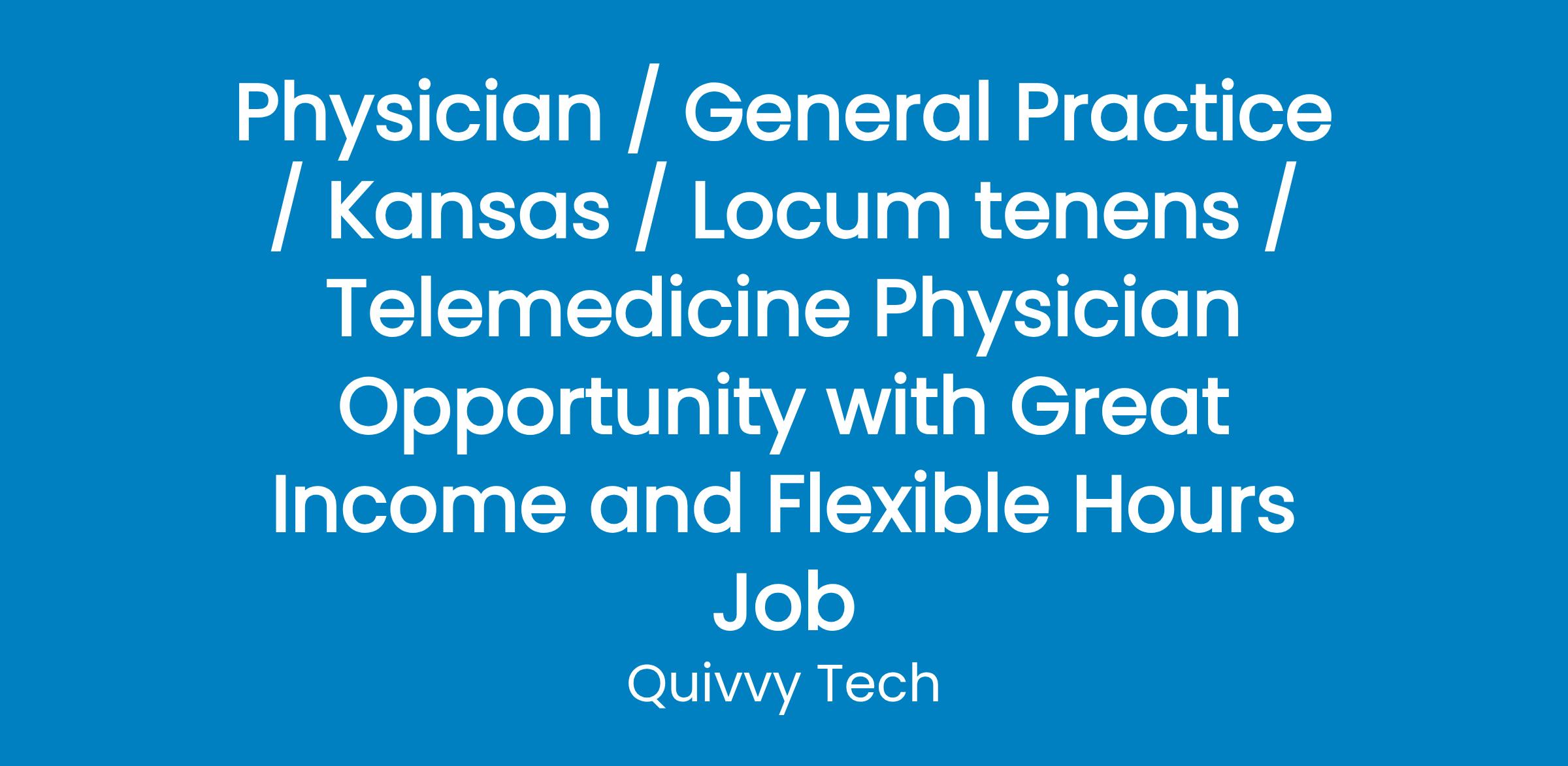 Physician / General Practice / Kansas / Locum tenens / Telemedicine Physician Opportunity with Great Income and Flexible Hours Job