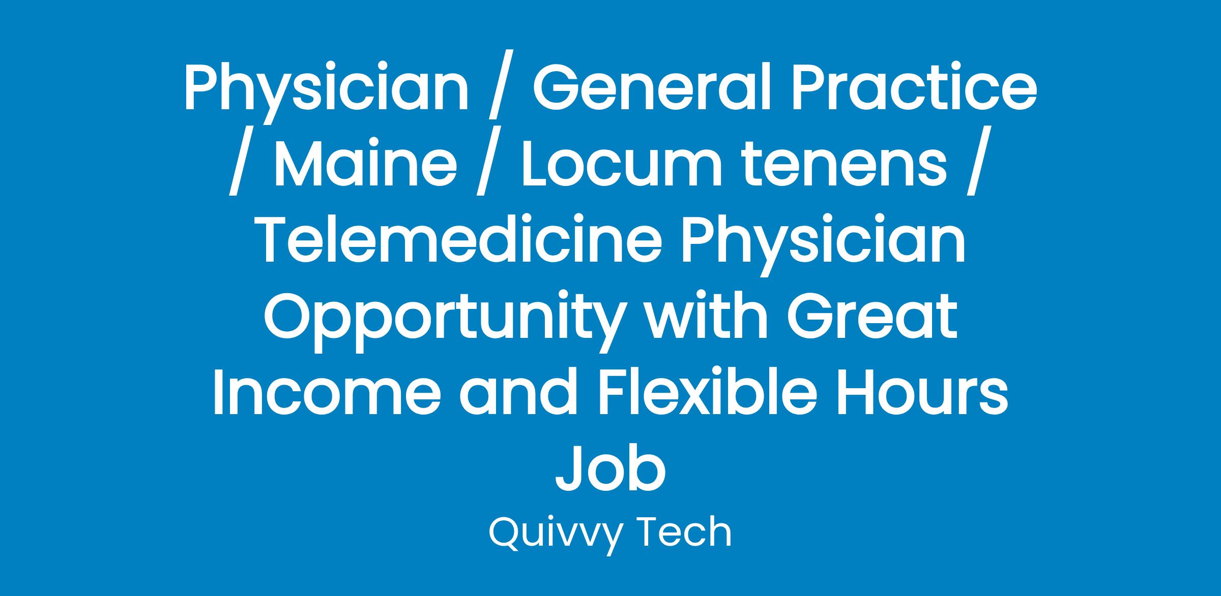 Physician / General Practice / Maine / Locum tenens / Telemedicine Physician Opportunity with Great Income and Flexible Hours Job