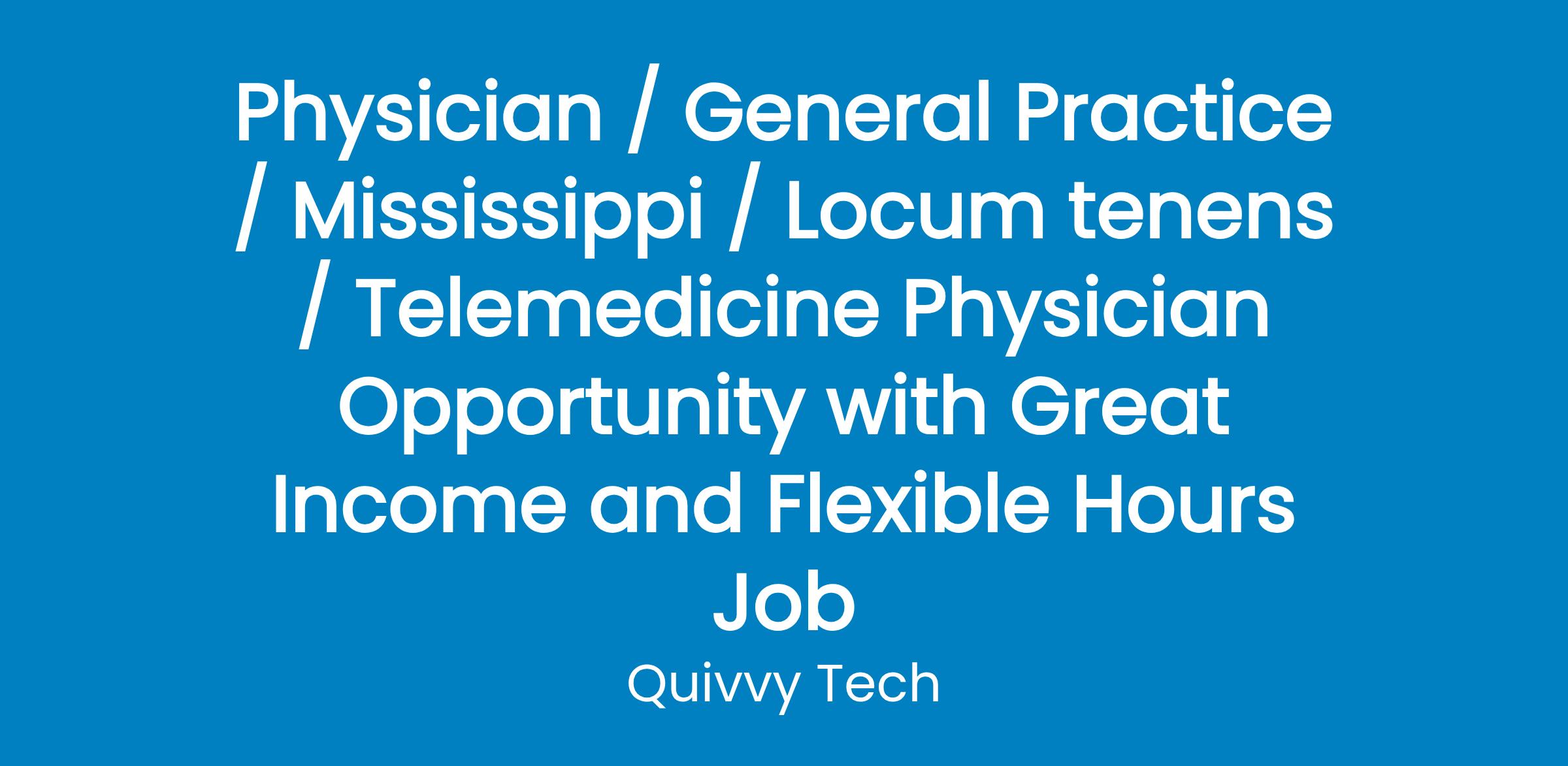 Physician / General Practice / Mississippi / Locum tenens / Telemedicine Physician Opportunity with Great Income and Flexible Hours Job