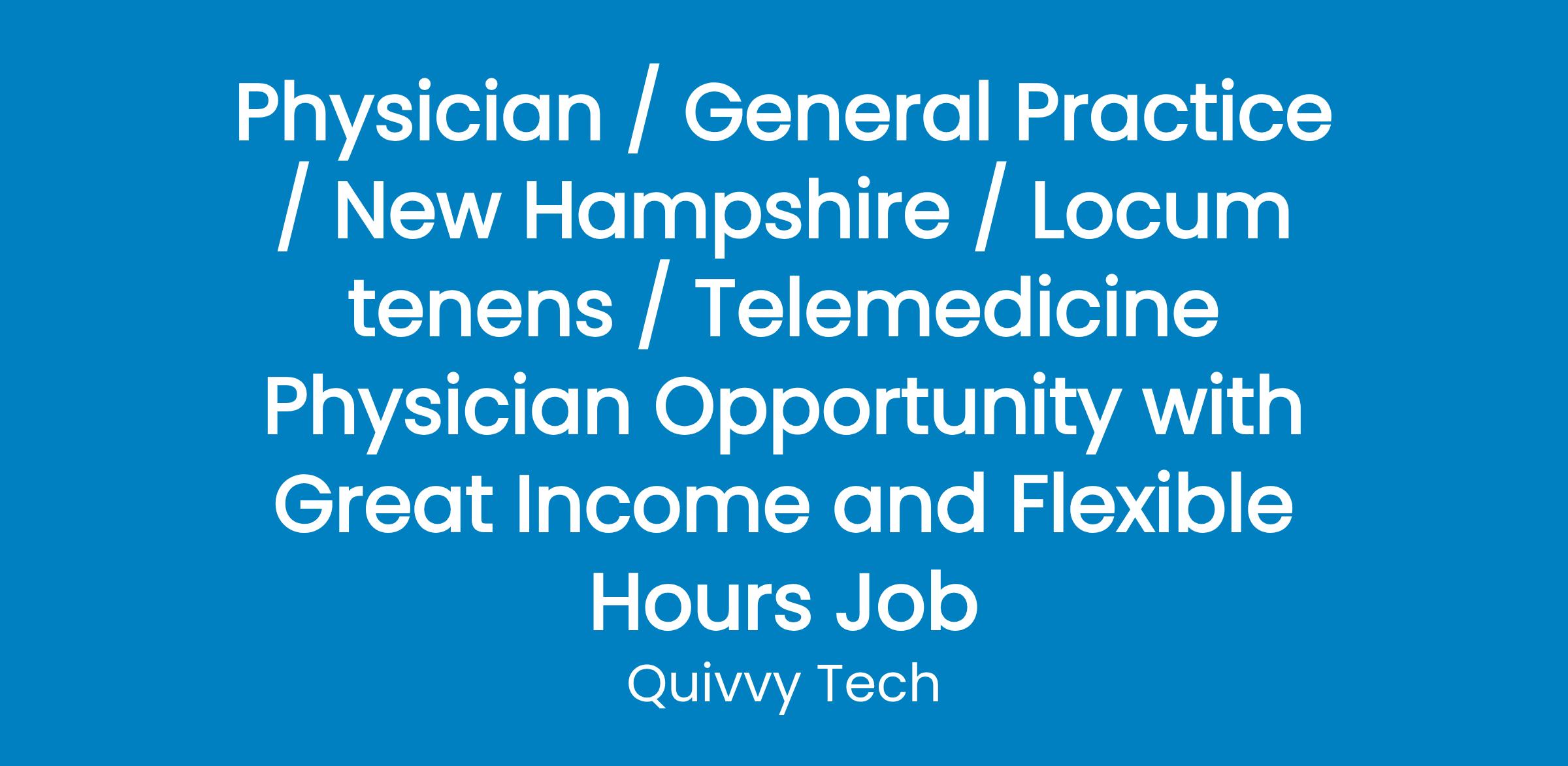 Physician / General Practice / New Hampshire / Locum tenens / Telemedicine Physician Opportunity with Great Income and Flexible Hours Job
