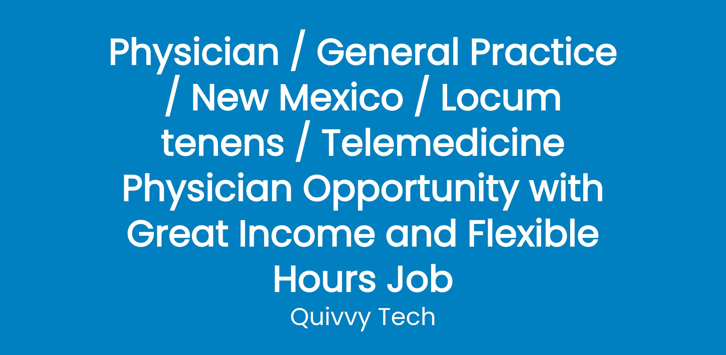 Physician / General Practice / New Mexico / Locum tenens / Telemedicine Physician Opportunity with Great Income and Flexible Hours Job
