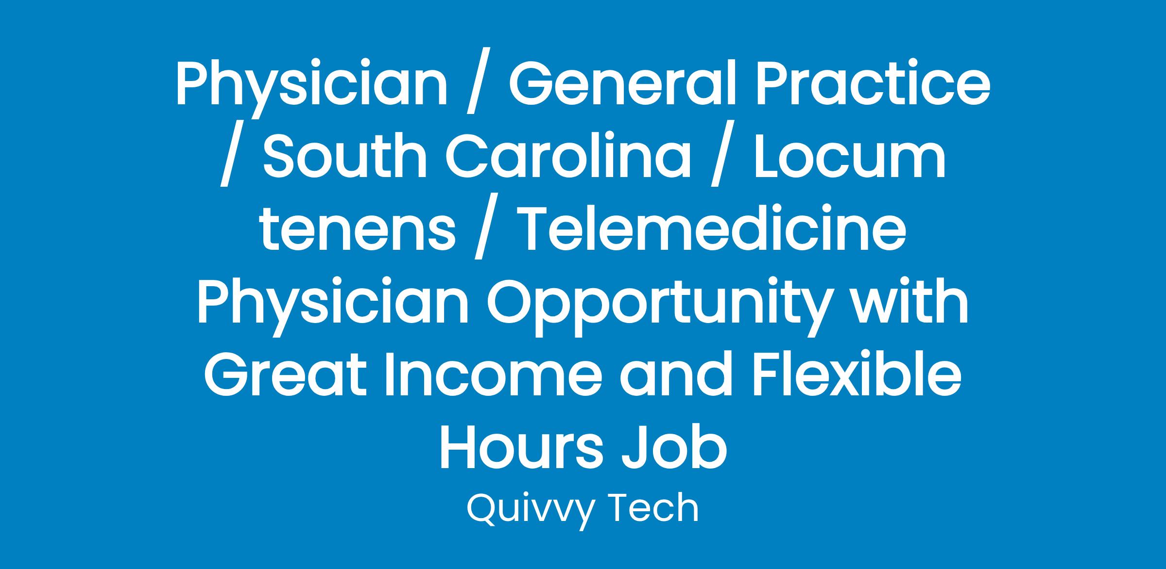 Physician / General Practice / South Carolina / Locum tenens / Telemedicine Physician Opportunity with Great Income and Flexible Hours Job
