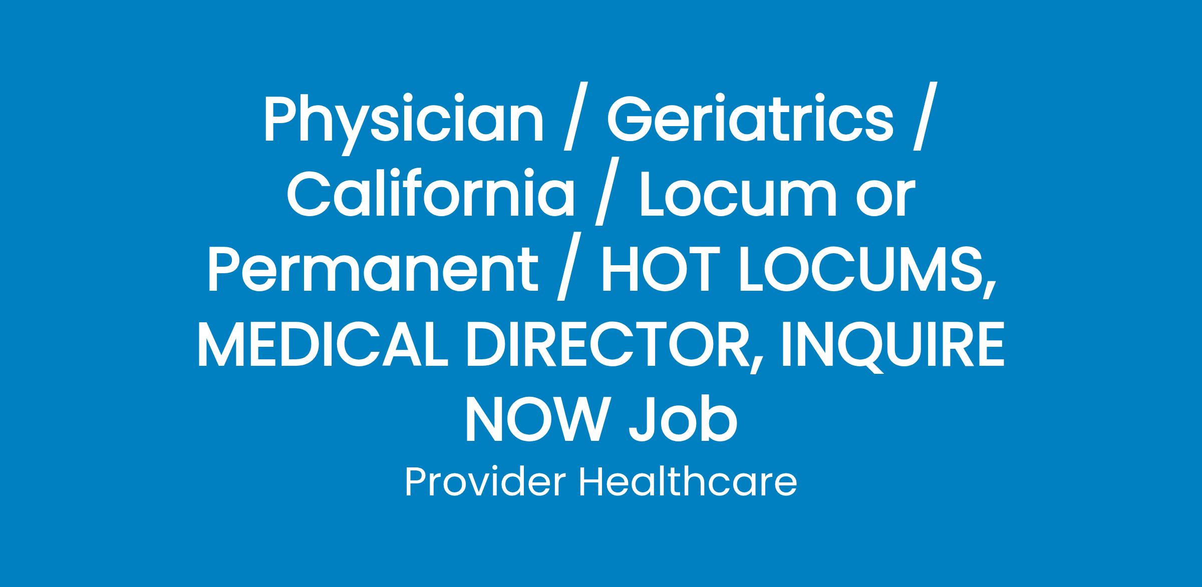 Internal Medicine Locum Tenens in California High Pay & Flexibility!Looking for flexibility, top pay, and new experiences? Join us as a Locum Tenens Internal Medicine Physician in California, where you can work on your schedule while exploring vibrant cities, coastal escapes, and scenic rural communities.Why Choose Locum Tenens?- Top Compensation Competitive pay with travel and housing covered.- Flexible Scheduling Choose assignments that fit your lifestyle.- Diverse Practice Settings Clinics, hospitals, outpatient care & more.- Hassle-Free Process We handle licensing, travel, and malpractice insurance.- No Long-Term Commitment Explore different locations without a permanent move.What Were Looking For:Board-Certified Internal Medicine Physician (MD/DO)Active California Medical License (or ability to obtain)Strong clinical skills and adaptabilityWhy California?From San Franciscos culture to the beaches of San Diego, California offers endless opportunities for adventure. Enjoy world-class dining, outdoor activities, and top-tier medical opportunitiesall while getting paid!Apply Now!- Send your CV to - Call/Text Kassidy at for details- Visit to learn moreTake control of your careerapply today!