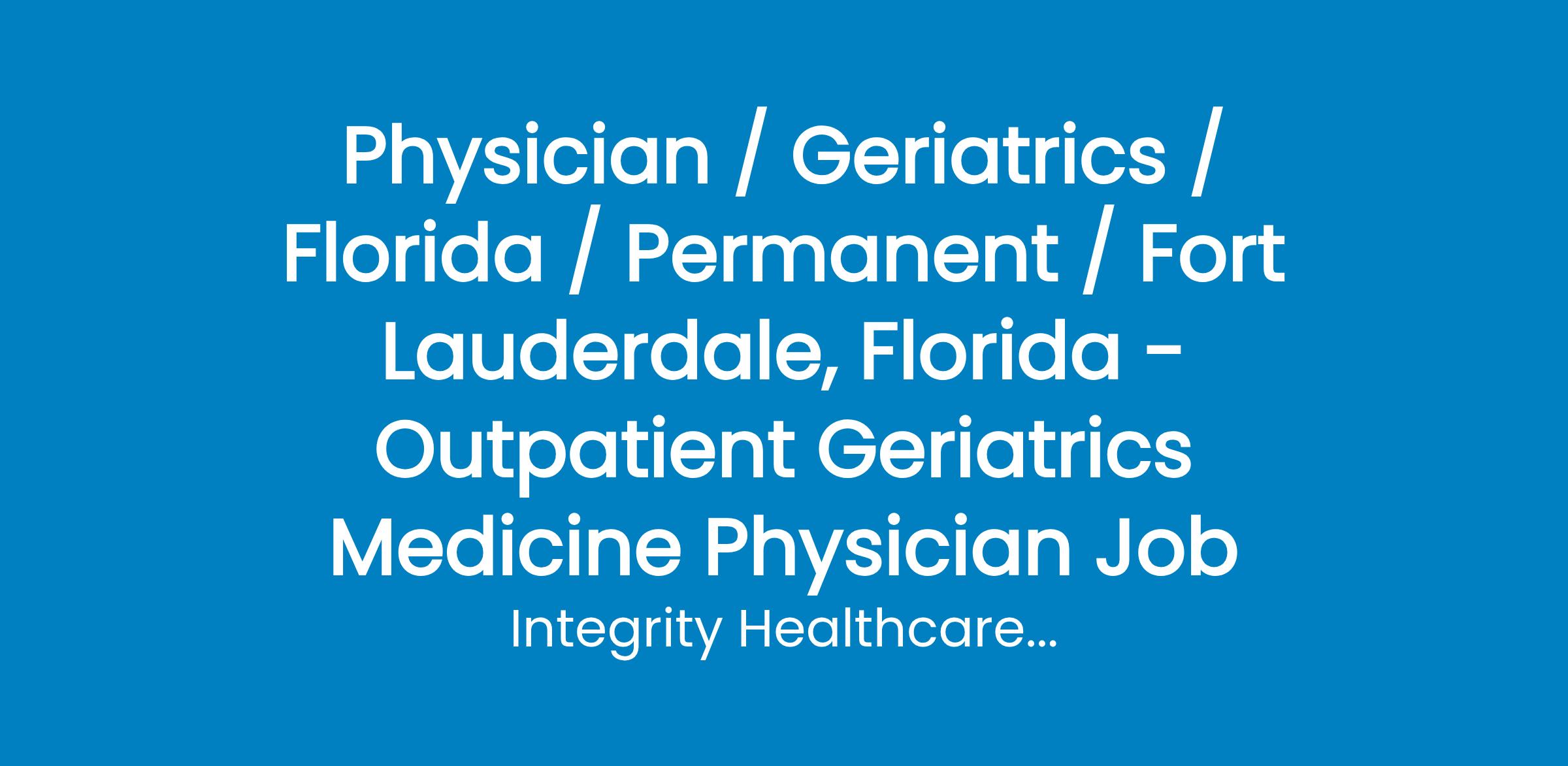 Physician / Geriatrics / Florida / Permanent / Fort Lauderdale, Florida - Outpatient Geriatrics Medicine Physician Job