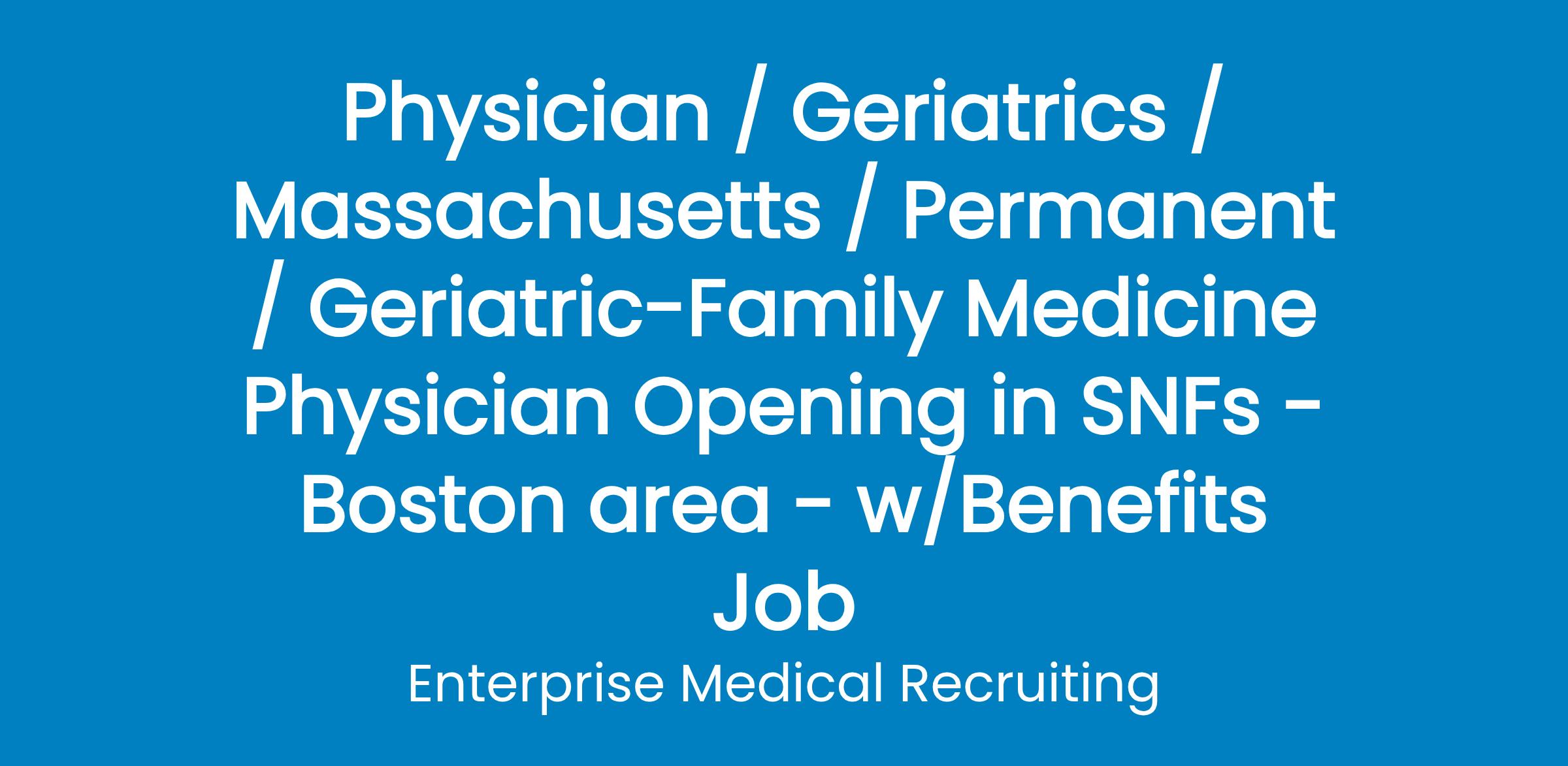 A non-profit healthcare organization in the Boston area is looking to hire a Family Medicine-Geriatrician physician. The organization is dedicated to helping older adults live safely and comfortably in their homes and communities for as long as possible. The primary focus is on reducing the time older adults spend in hospitals and nursing facilities.