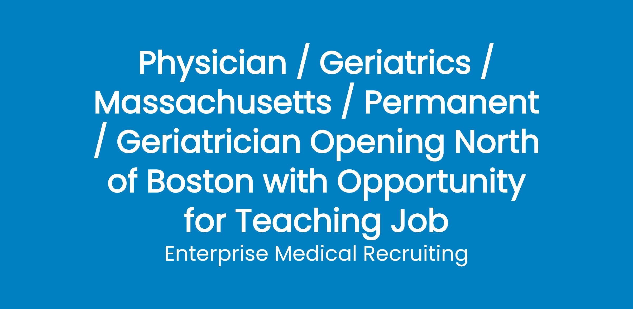 A federally qualified health center with 6 locations in the Merrimack Valley, Massachusetts area (30 minutes outside Boston) needs a Spanish-fluent Geriatrician.