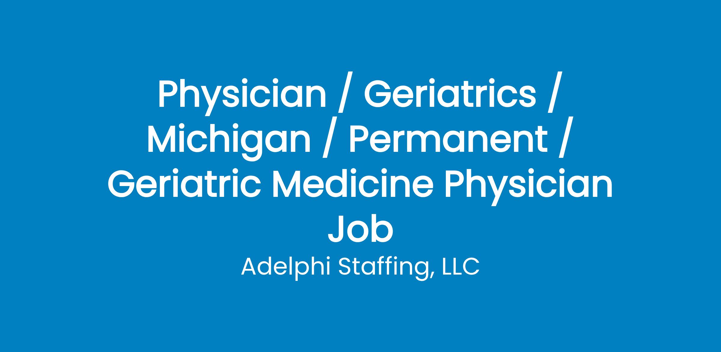 Other Info: - Experience working with Geriatrics population - Opportunity to teach Residents, Medical Students, and Fellows - Open to new graduates who have completed a Fellowship in Geriatrics