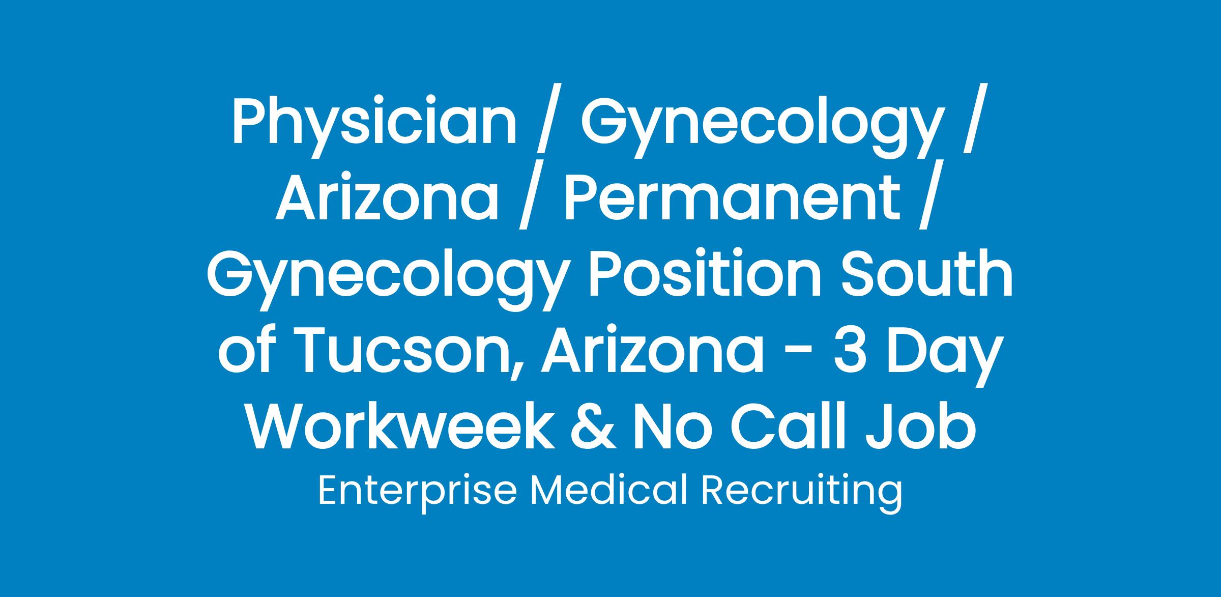 A community hospital awarded for its excellence in outcomes, patient satisfaction, and financial strength is in search of a Gynecology-only physician to join their team in southern Arizona (70 miles south of Tucson) .