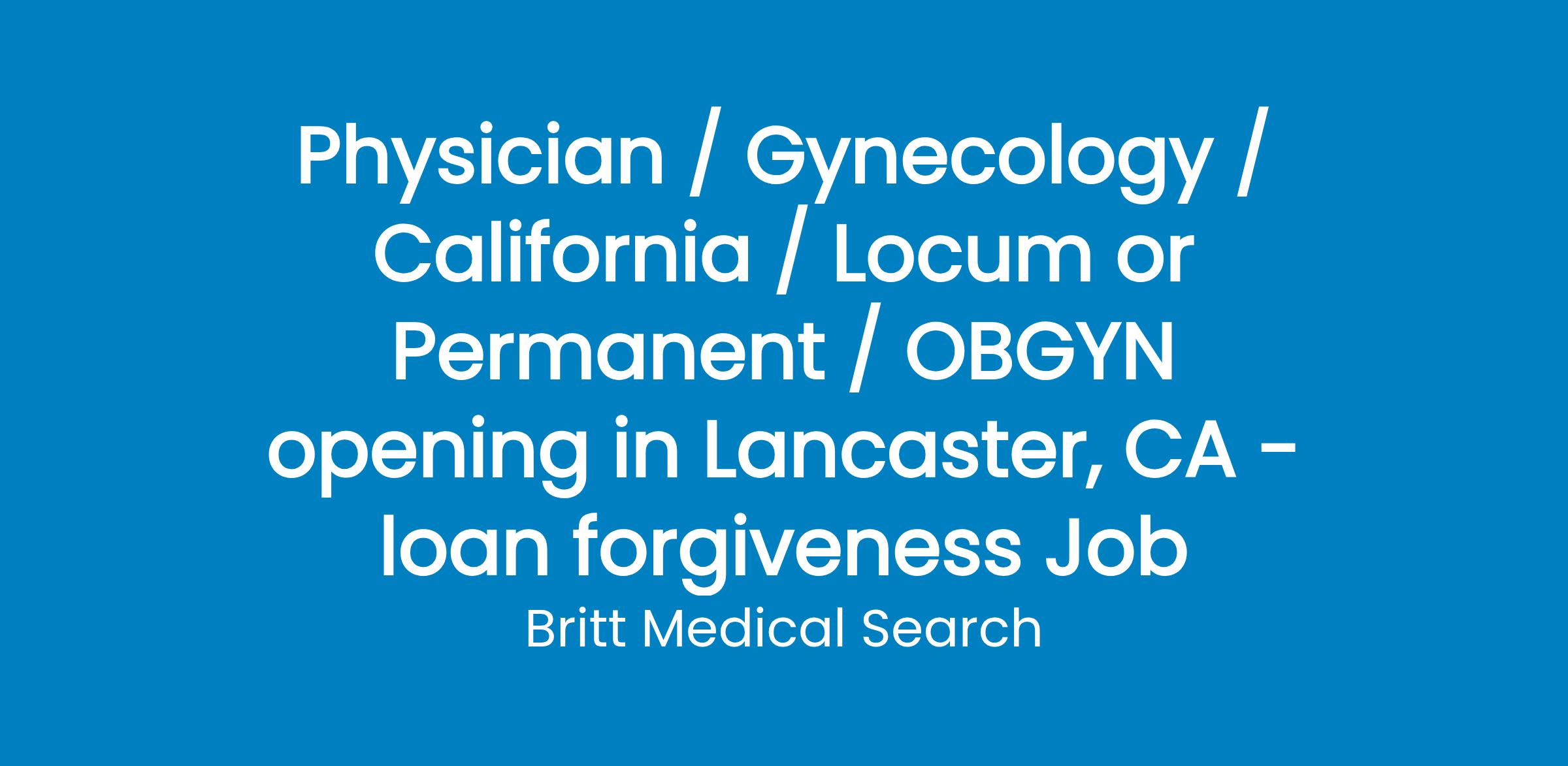 Seeking BE/BC OBGYN to join talented team in Lancaster, CA. Successful candidates will be able to diagnose, treat, and prevent medical conditions that affect women, and work with expecting mothers throughout their pregnancies, during childbirth, and provide postpartum comprehensive medical services for adult patients. The candidate will also be able to diagnose, treat, and prevent disorders that affect women, such as breast cancer, cervical cancer, and menopause. The candidate will be responsible for meeting, assessing and diagnosing patients in our clinic and providing them with healthcare services that meet the national standards of care.