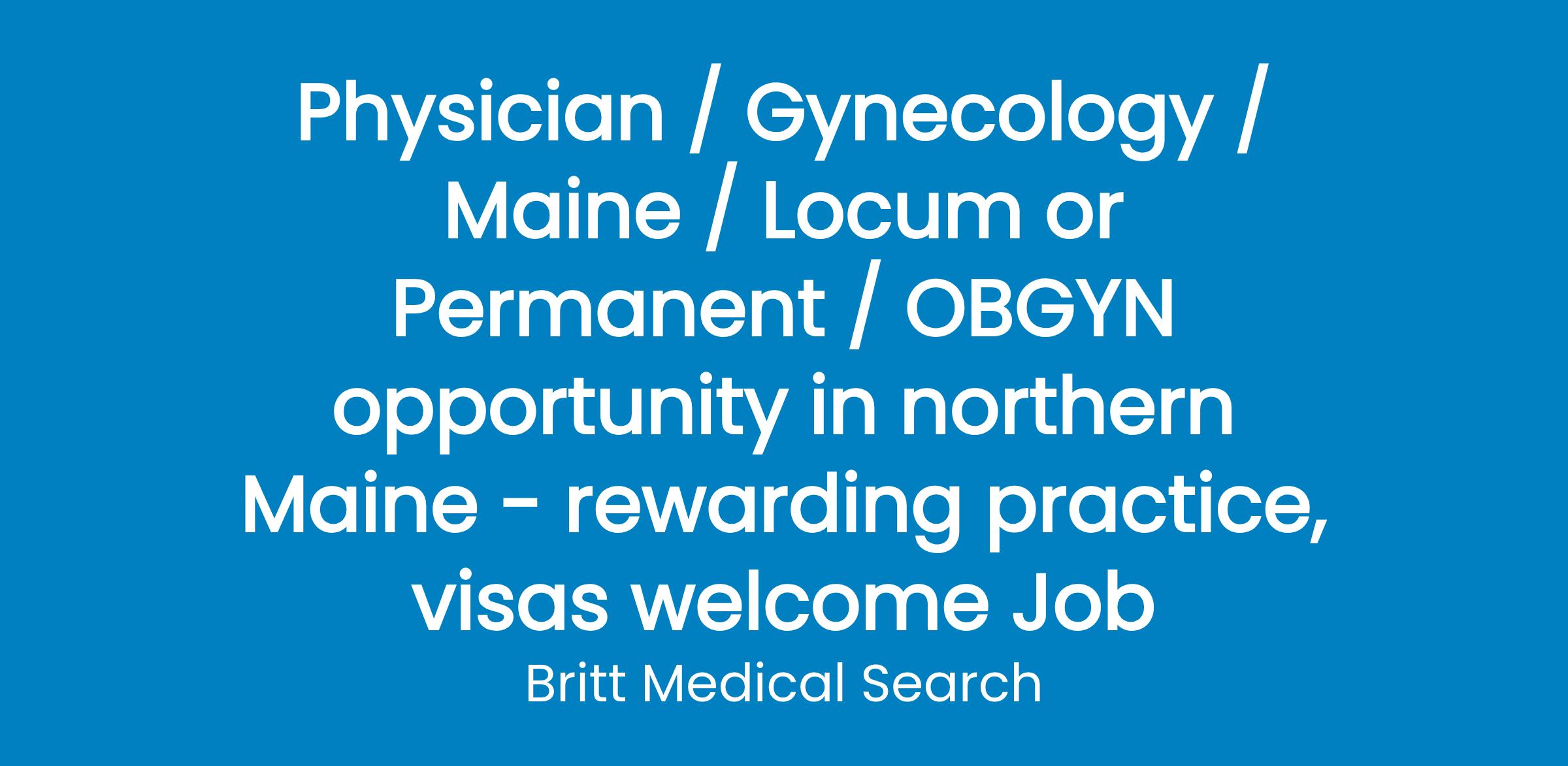Healthcare system in outdoor Maine paradise seeks BC/BE OBGYN.