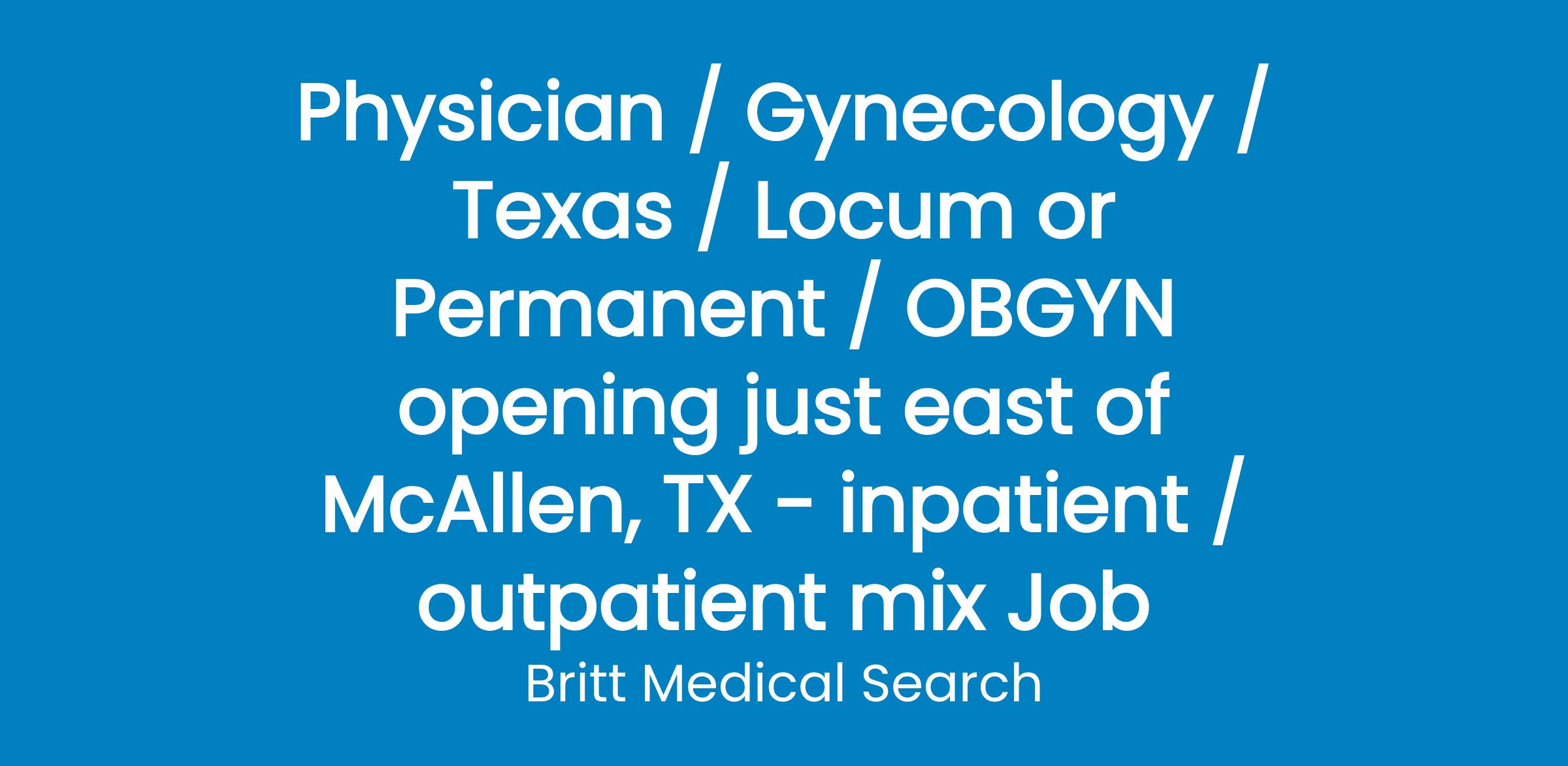 Seeking BE/BC OBGYN in south TX, just outside of McAllen.