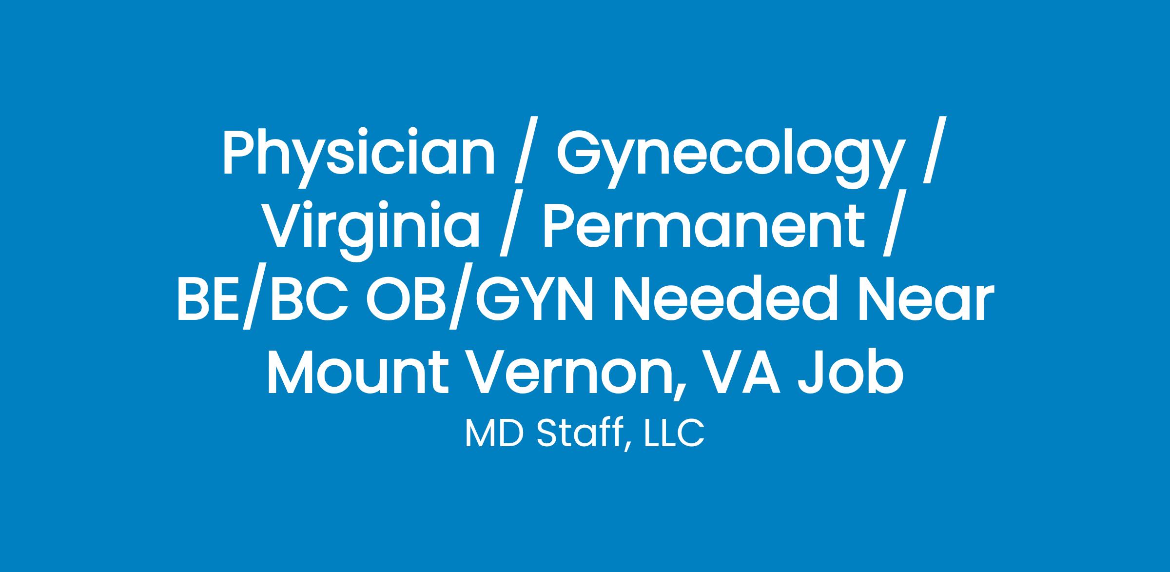 A well established practice is seeking a BE/BC OB/GYN to join an outstanding team that is looking for a great work environment. This position is with a hospital employed practice to join two other experienced OB/GYN physicians. The candidate must be trained in laparoscopy and have a desire to incorporate gynecology into their practice. The hospital has a Level 2 Intermediate Care Nursery and recent renovations to the nursery have doubled its size and added four beds, for a total of seven. Call coverage is 1:3. This position offers a competitive compensation package with base salary plus wRVU bonus potential, sign-on bonus, relocation allowance, and loan repayment assistance and residency stipend during last year of training are negotiable. The location is a friendly place nestled between the Blue Ridge Mountains and the bustling cities of northern Virginia. It is a Planetree-designated facility and serves the residents of Fauquier and several surrounding counties. It is today renowned as the heart of hunt and wine country. Its residents are equestrians, winery lovers and outdoors enthusiasts. If you are interested in hearing more about this opportunity, please call or text HDA MD Staff at . You can also reach us through email at . Please reference Job ID .