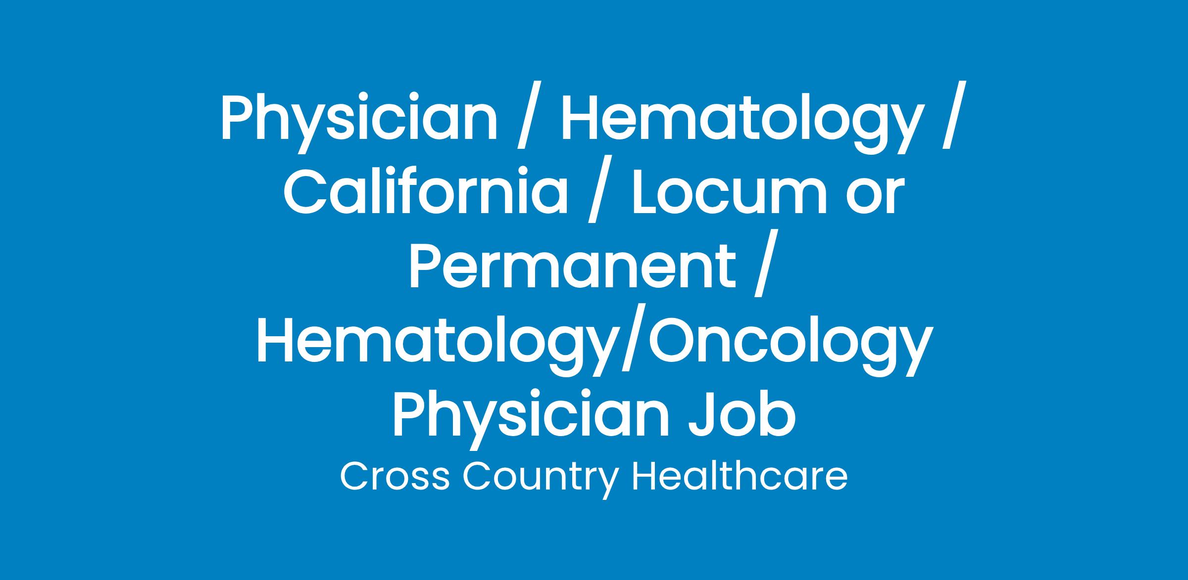 • Board Certified/Board Eligible in Medical Oncology and/or Hematology; eligible for California licensure.