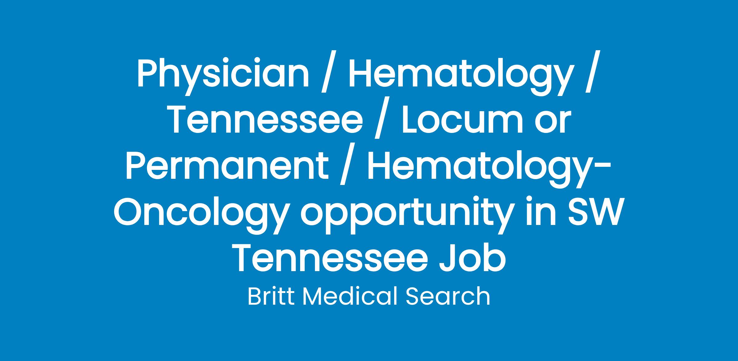 Seeking a BE/BC Hematology/Oncology Physician to join established group in TN.