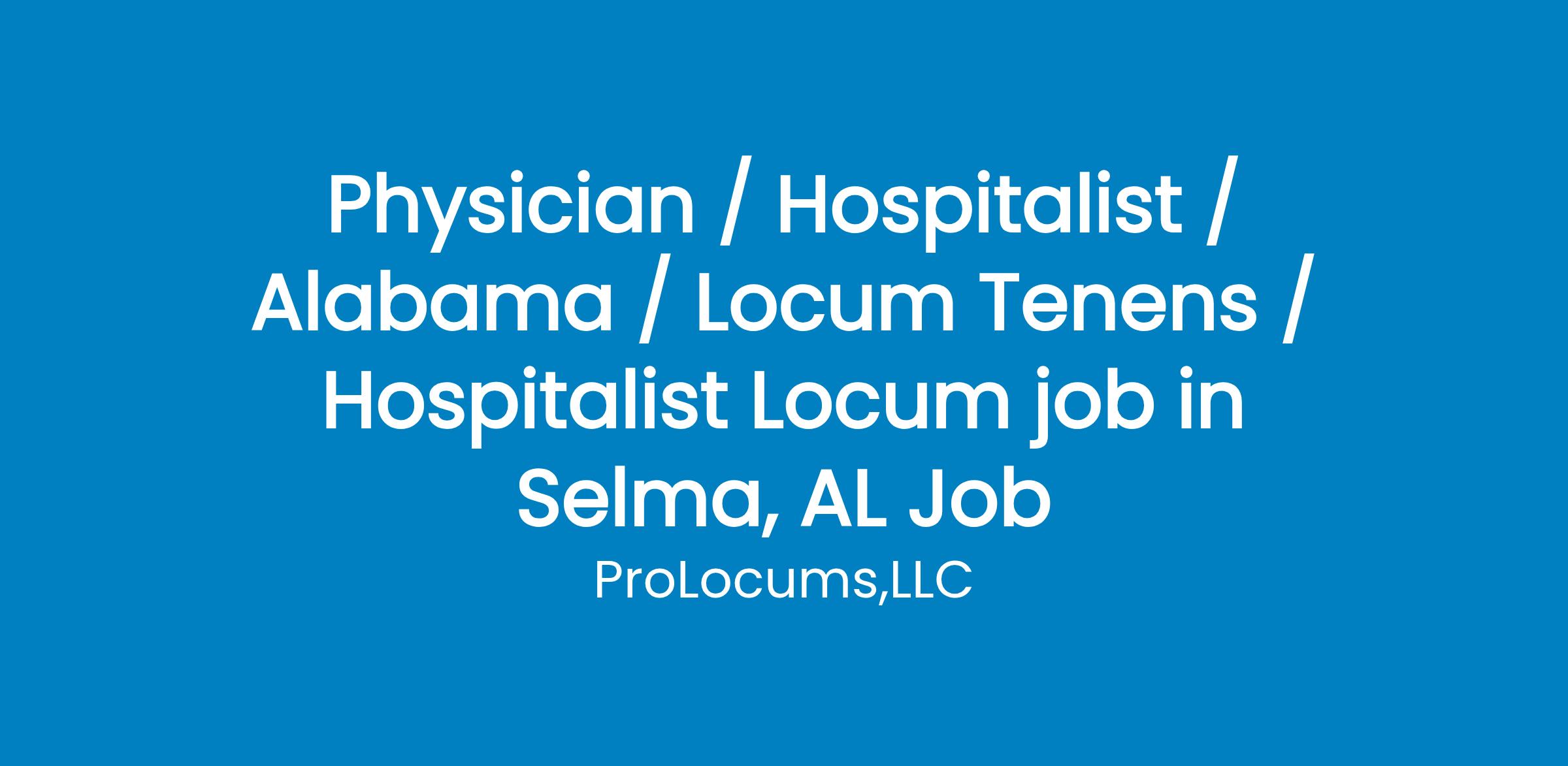 Physician / Hospitalist / Alabama / Locum Tenens / Hospitalist Locum job in Selma, AL Job