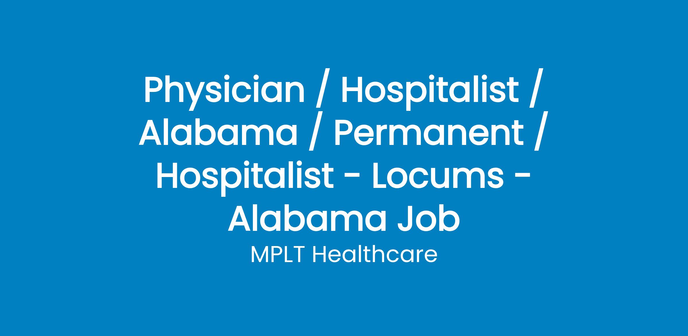 MPLT Healthcare is looking for physicians who Understand the Urgency, Never Give Up, and Have the Courage to Excel in the forever changing medical industry! We have numerous opportunities for an experienced Hospitalist with highly competitive pay rates in Alabama.