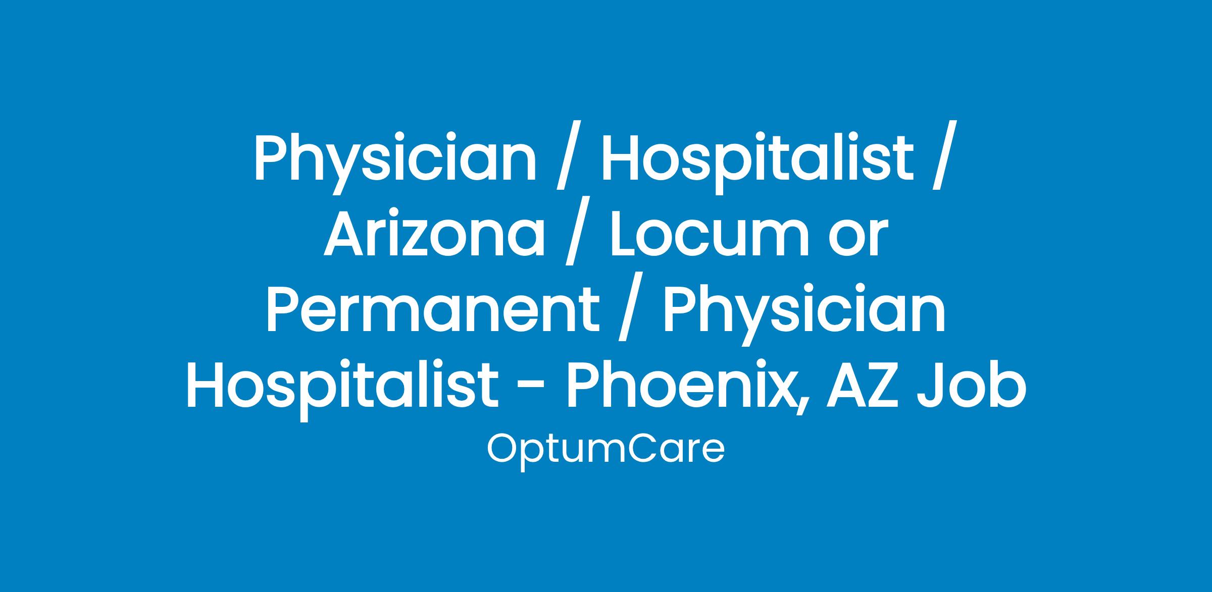 As a part of the OptumCare network, 4C is seeking a Hospitalist Physician to join our growing team in Arizona. At Optum, we are transforming healthcare nationally while providing physician-led care locally. Work with the largest care delivery organization in the world and start doing your lifes best work.(sm)