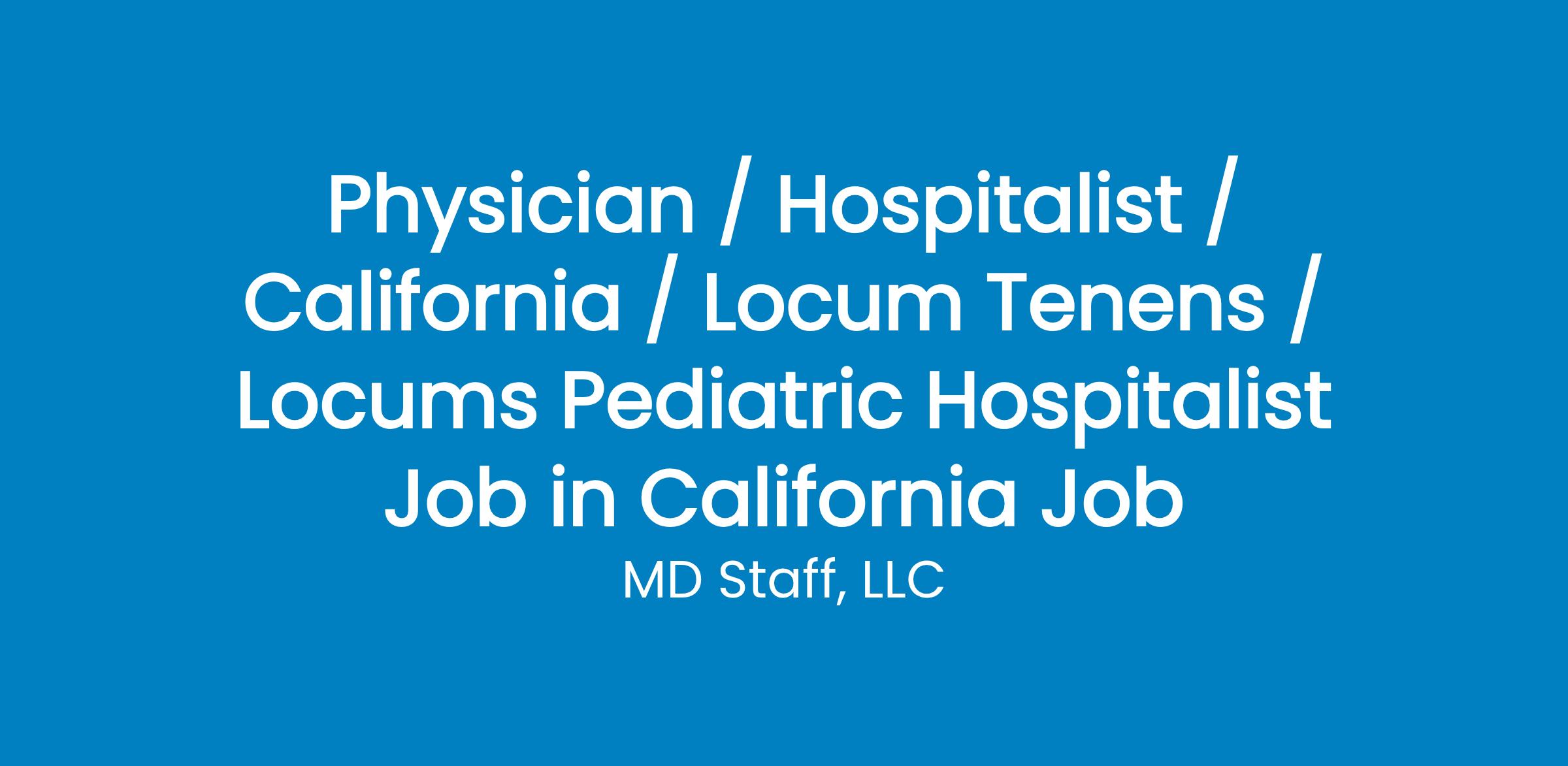 Locum Tenens Pediatric Hospitalist Opportunity near Fortuna, CA Are you a Pediatric Hospitalist seeking a locum tenens opportunity in California? We have an excellent position available near Fortuna, offering competitive rates and flexible scheduling. Position Details: Specialty: Pediatric Hospitalist Department: Inpatient Start Date: 11-20-2023 End Date: Ongoing Coverage Type: Scheduled Clinical Hours Only EMR System: Epic Allowed Holidays: New Year's Day, 4th of July, Memorial Day, Labor Day, Thanksgiving Day, Christmas Day Board Certification: Eligible License Requirement: Active License in CA Location: This opportunity is located near Fortuna, CA, providing access to a variety of outdoor activities and a picturesque coastal setting. If you're interested in this locum tenens position, please contact MD Staff at or via email at . Please reference Job ID .