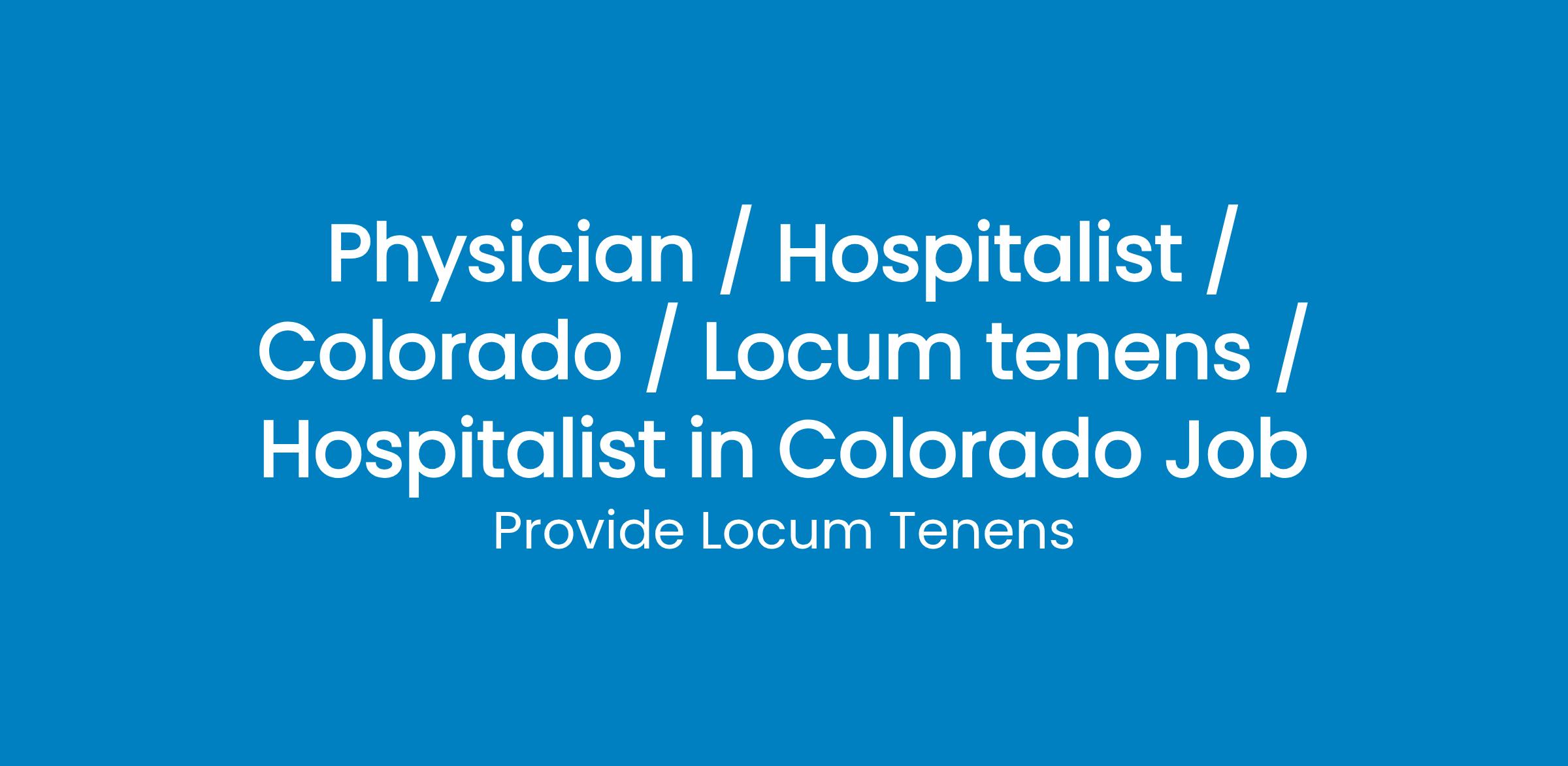 Physician / Hospitalist / Colorado / Locum tenens / Hospitalist in Colorado Job