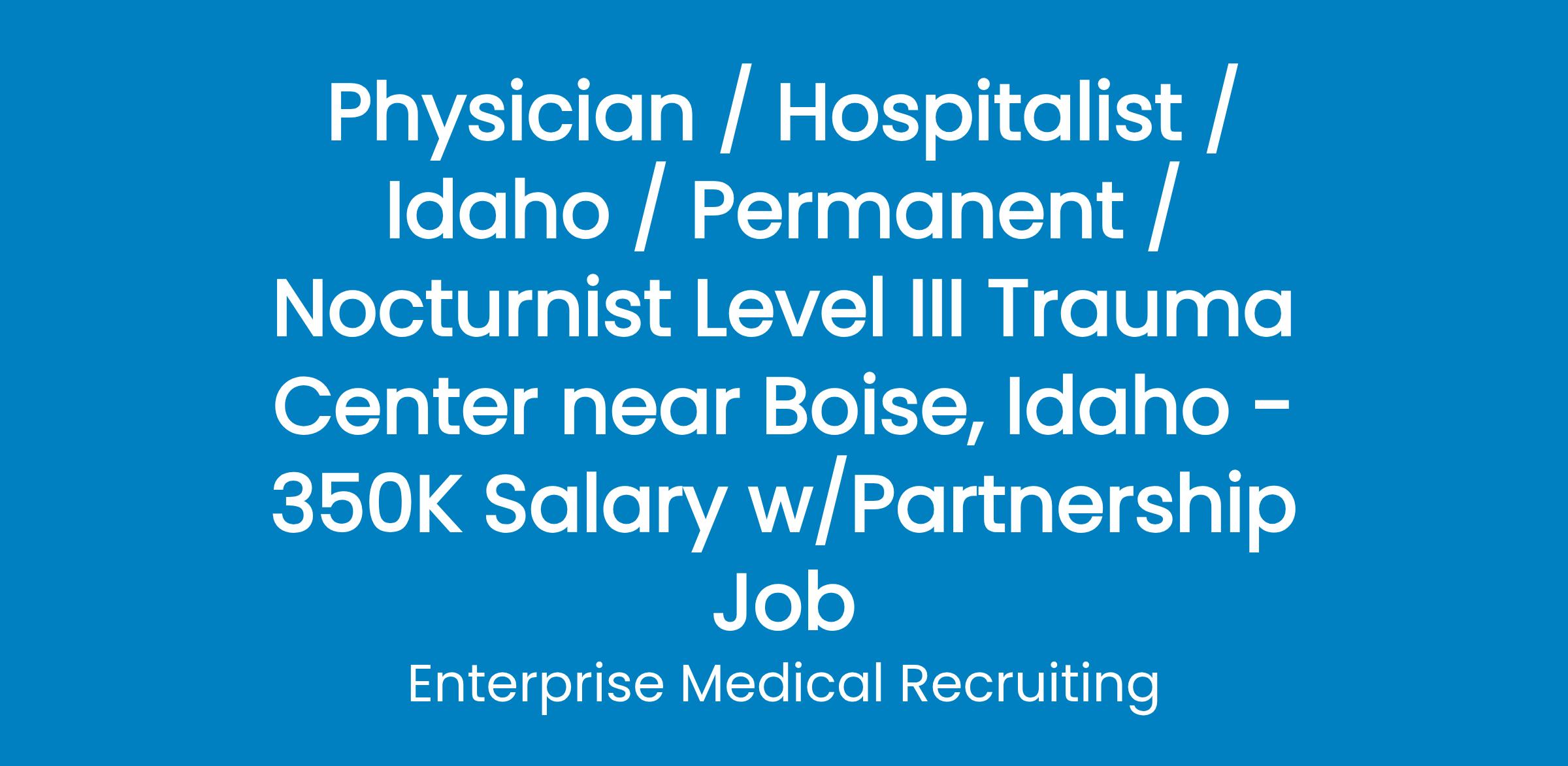 Join a team of Hospitalists at a level III trauma center located just minutes from Boise, ID.