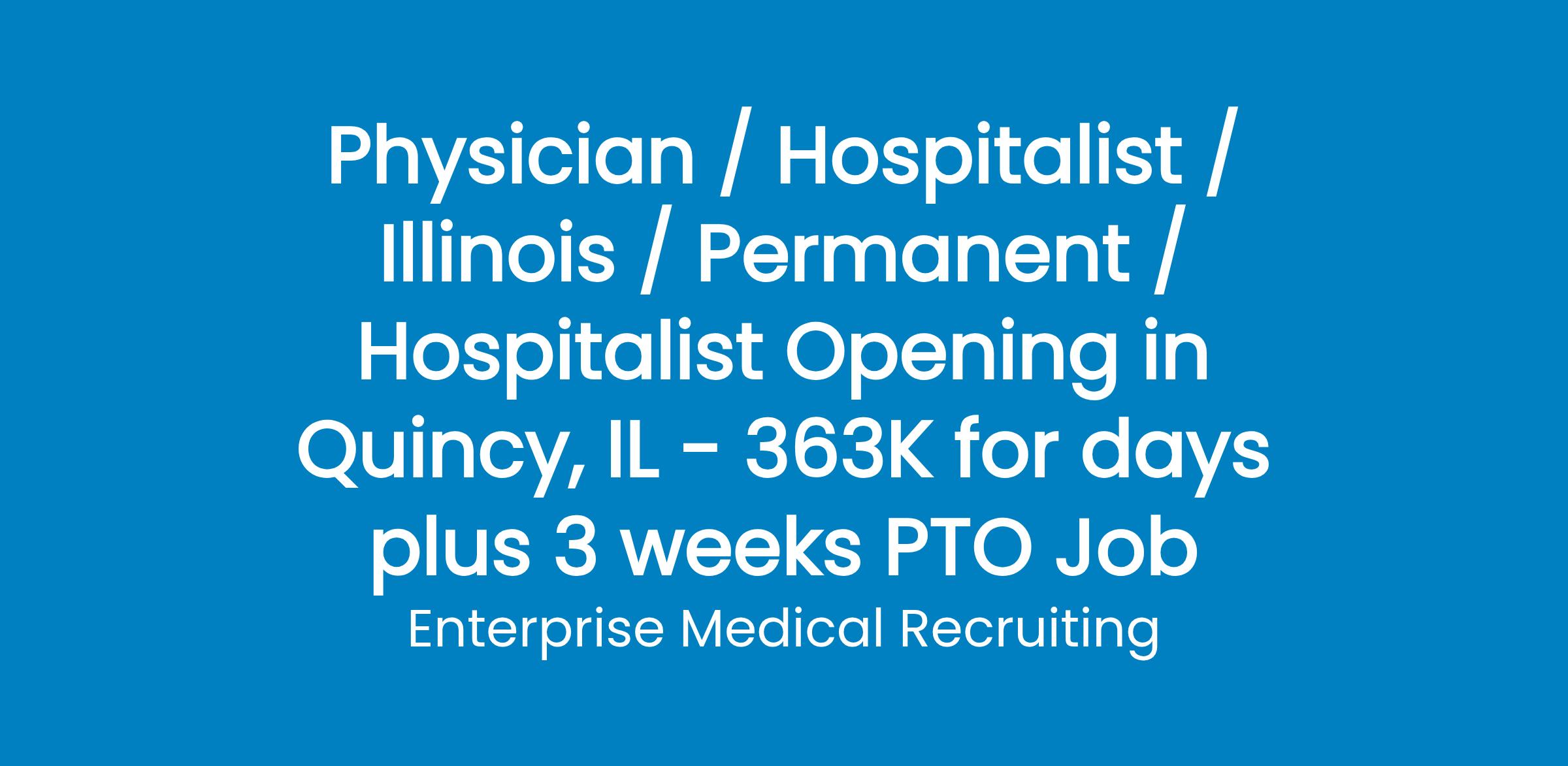 A Hospitalist team in Western Illinois that has recently transitioned to a hospital-employed group in order to offer the best possible package to its physicians is searching for an additional hospitalist.