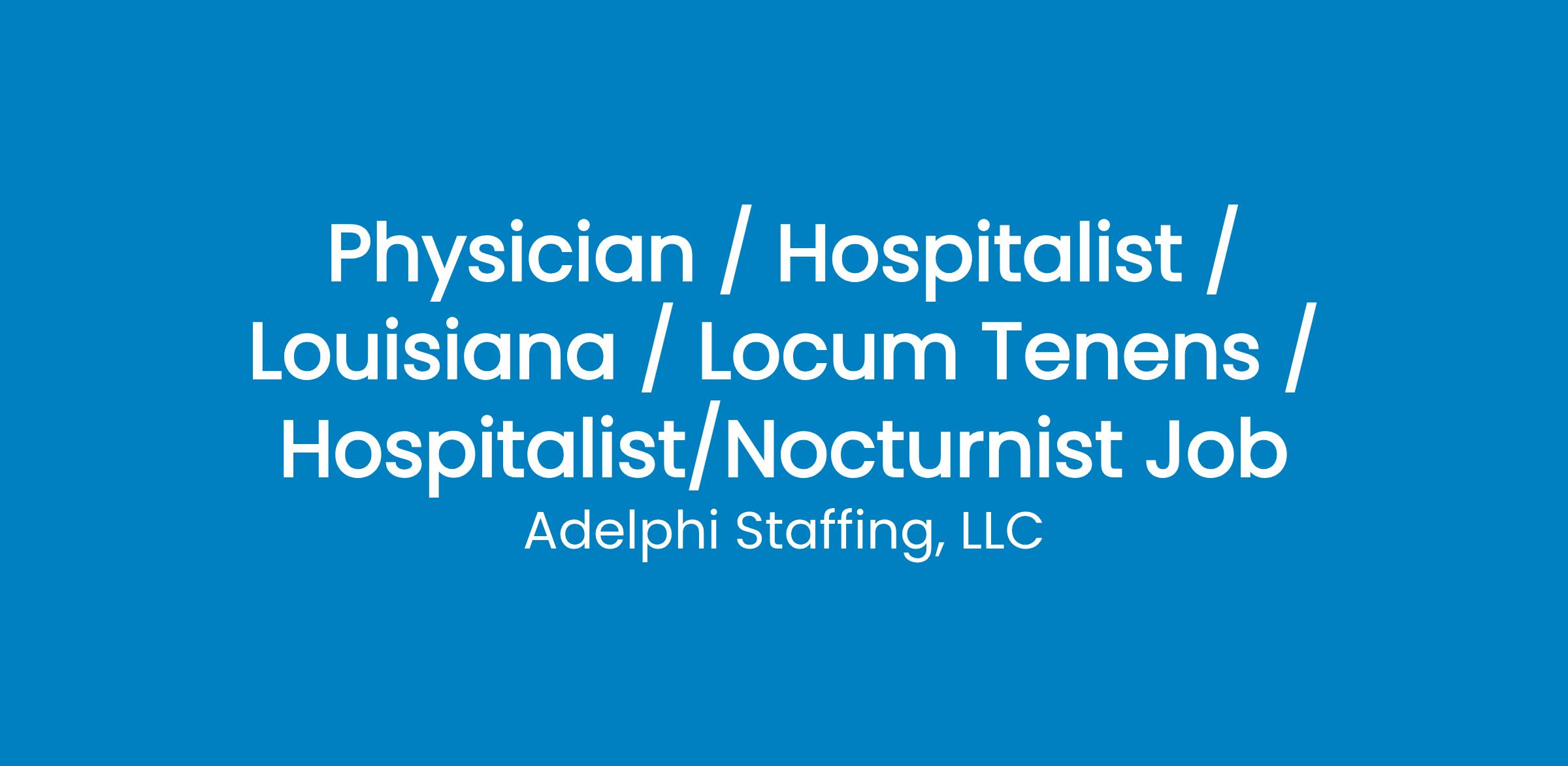JOB OVERVIEW Job Title: Hospitalist Internal Medicine Job Type: Locum Tenens Location: Lafayette, Louisianna Service Setting: Inpatient Hospital Medicine Coverage Type: Clinical Only Coverage Period: June 2025 Ongoing CLINICAL SHIFT SCHEDULE Physicians (MD/DO): 7 AM 7 PM: 11 rounders/admitters 7 PM 7 AM: 1 Nocturnist NP/PA: 7 AM 7 PM: 2 rounders/admitters/cross-cover call 7 PM 7 AM: 1 NP/PA cross-cover call/admitter