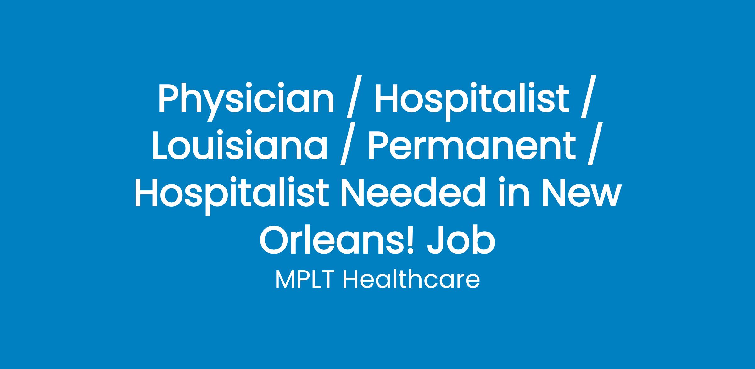 MPLT Healthcare is looking for physicians who Understand the Urgency, Never Give Up, and Have the Courage to Excel in the forever changing medical industry! We have numerous opportunities for an experienced hospitalist physician w ith highly competitive pay rates in New Orleans.