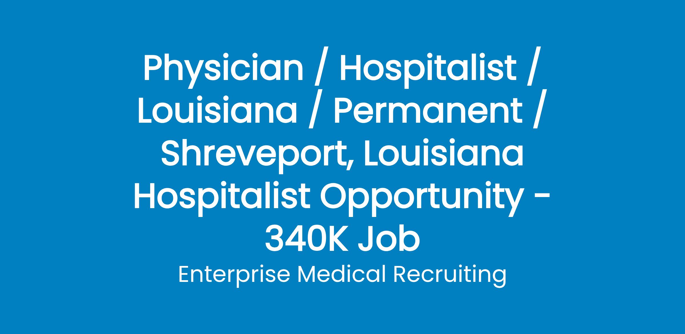 Join a well-established and highly regarded Hospitalist team inShreveport, Louisiana. This is an excellent opportunity to practice in a supportive, collegial environment withno procedures or codes required.