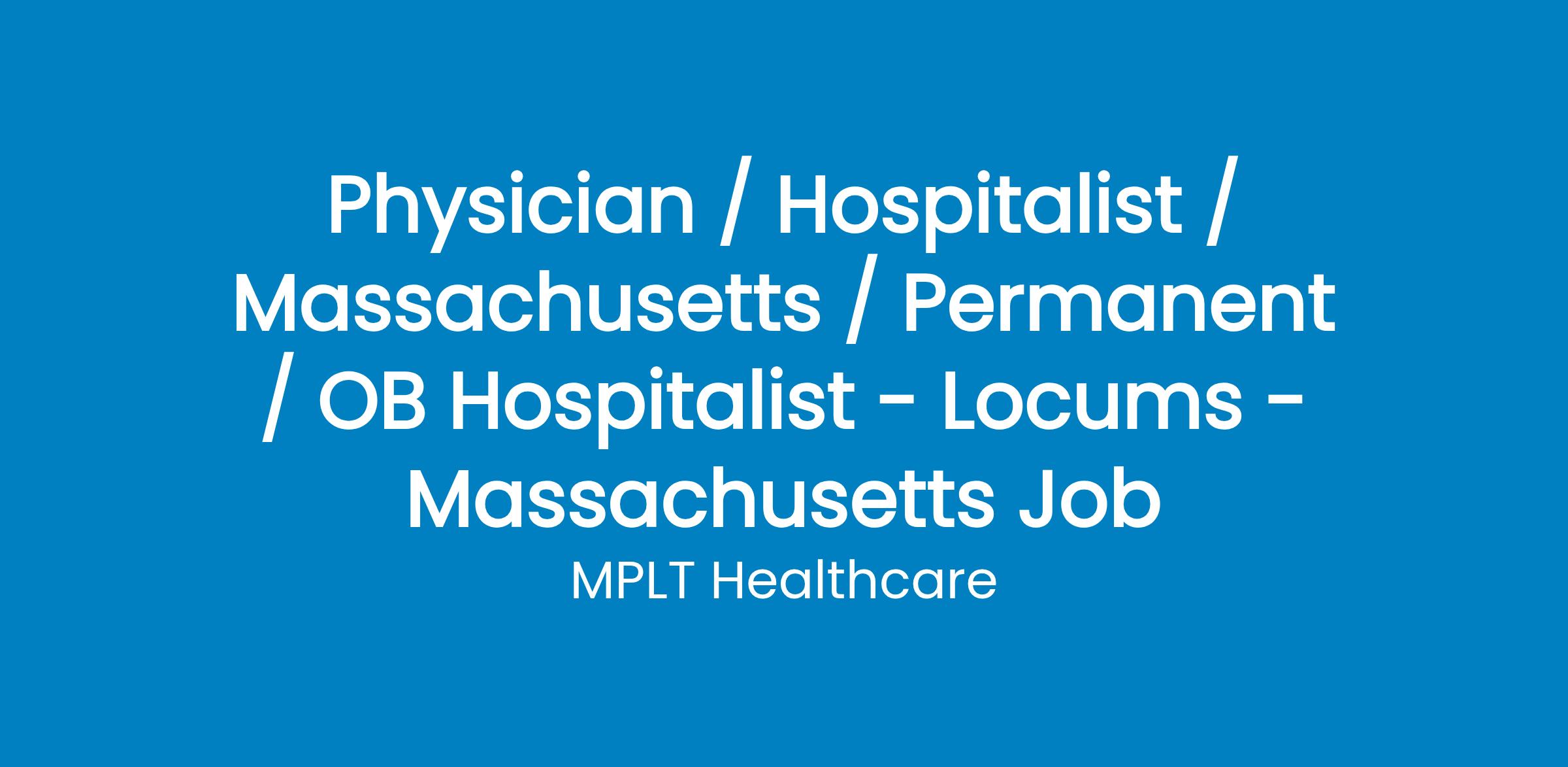 MPLT Healthcare is looking for physicians who Understand the Urgency, Never Give Up, and Have the Courage to Excel in the forever changing medical industry! We have numerous opportunities for an experienced OB Hospitalist with highly competitive pay rates in Massachusetts .
