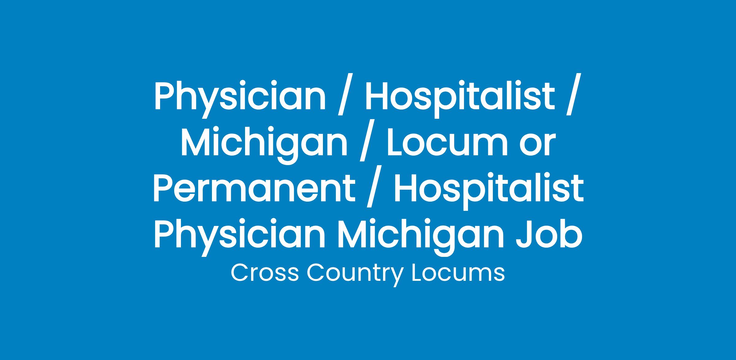 Physician / Hospitalist / Michigan / Locum or Permanent / Hospitalist Physician Michigan Job