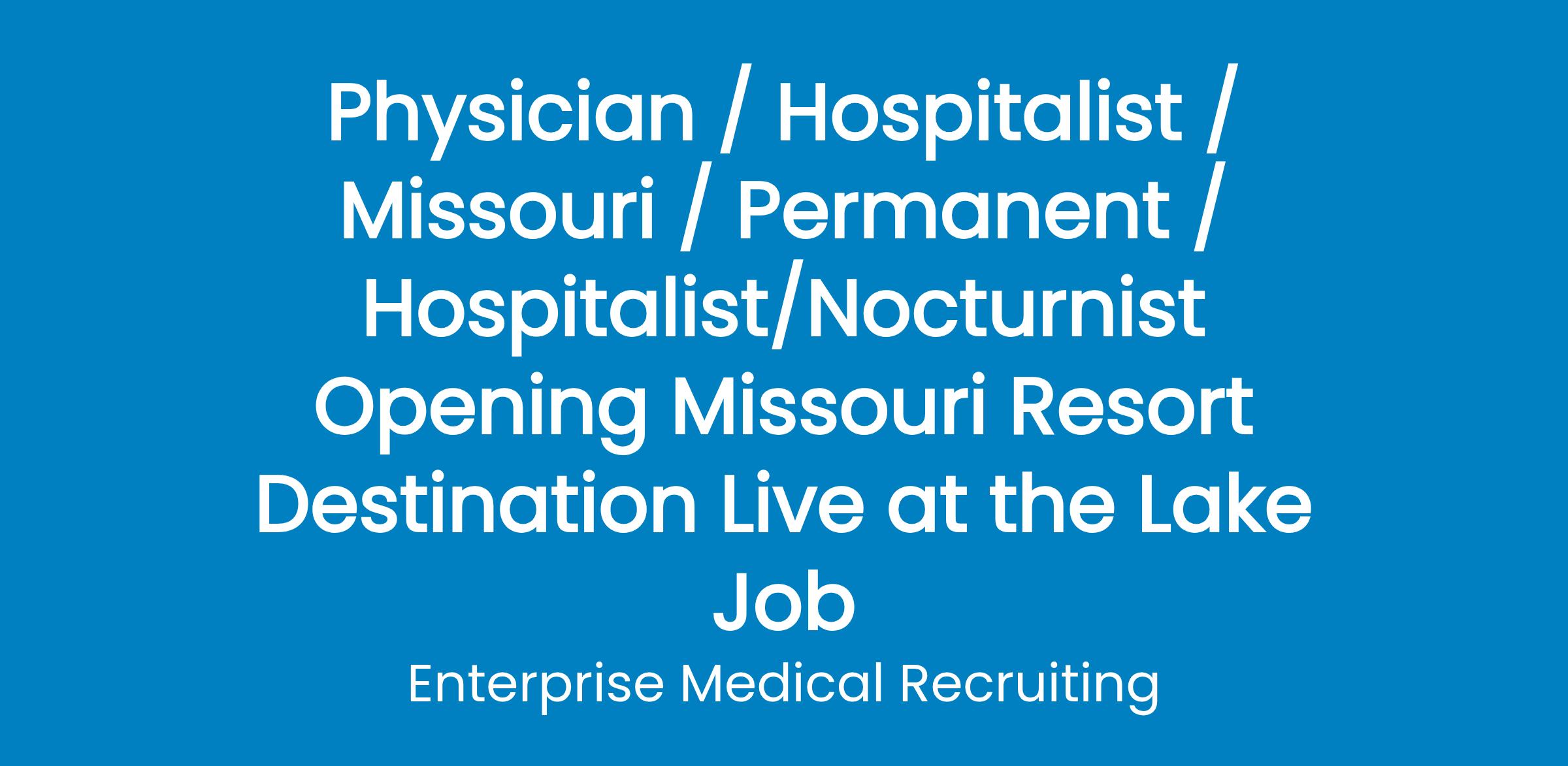 A new opportunity for BC/BE inpatient physicians in beautiful Osage Beach MO is available. Physicians will be joining an established team of six daytime Hospitalists and one Nocturnist in a supportive culture with skilled support staff. This is a full-time permanent position with a multi-specialty group in central Missouri.