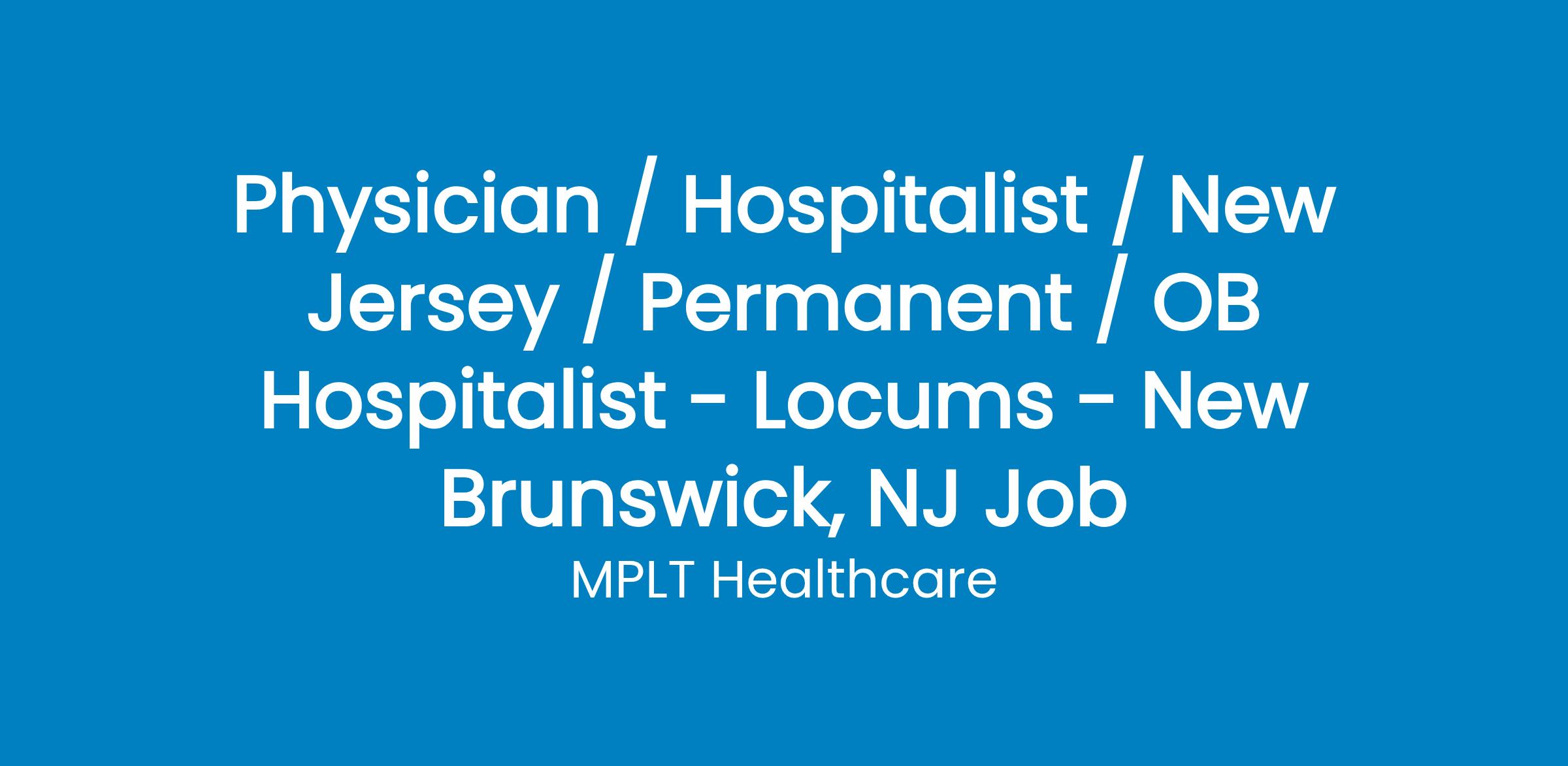 MPLT Healthcare is looking for physicians who Understand the Urgency, Never Give Up, and Have the Courage to Excel in the forever changing medical industry! We have numerous opportunities for an experienced OB Hospitalist with highly competitive pay rates in New Brunswick, NJ.