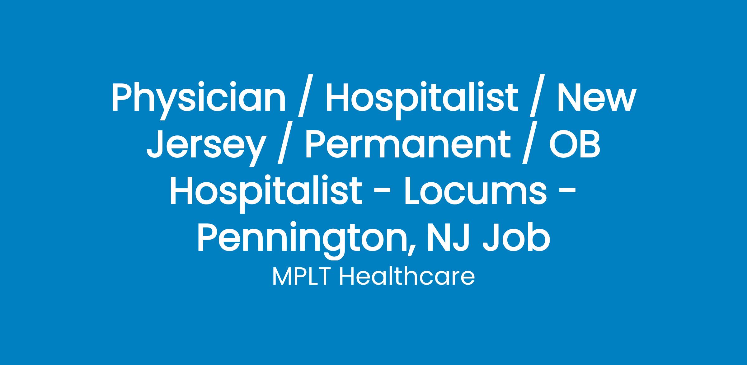 MPLT Healthcare is looking for physicians who Understand the Urgency, Never Give Up, and Have the Courage to Excel in the forever changing medical industry! We have numerous opportunities for an experienced OB Hospitalist with highly competitive pay rates in Pennington, NJ.